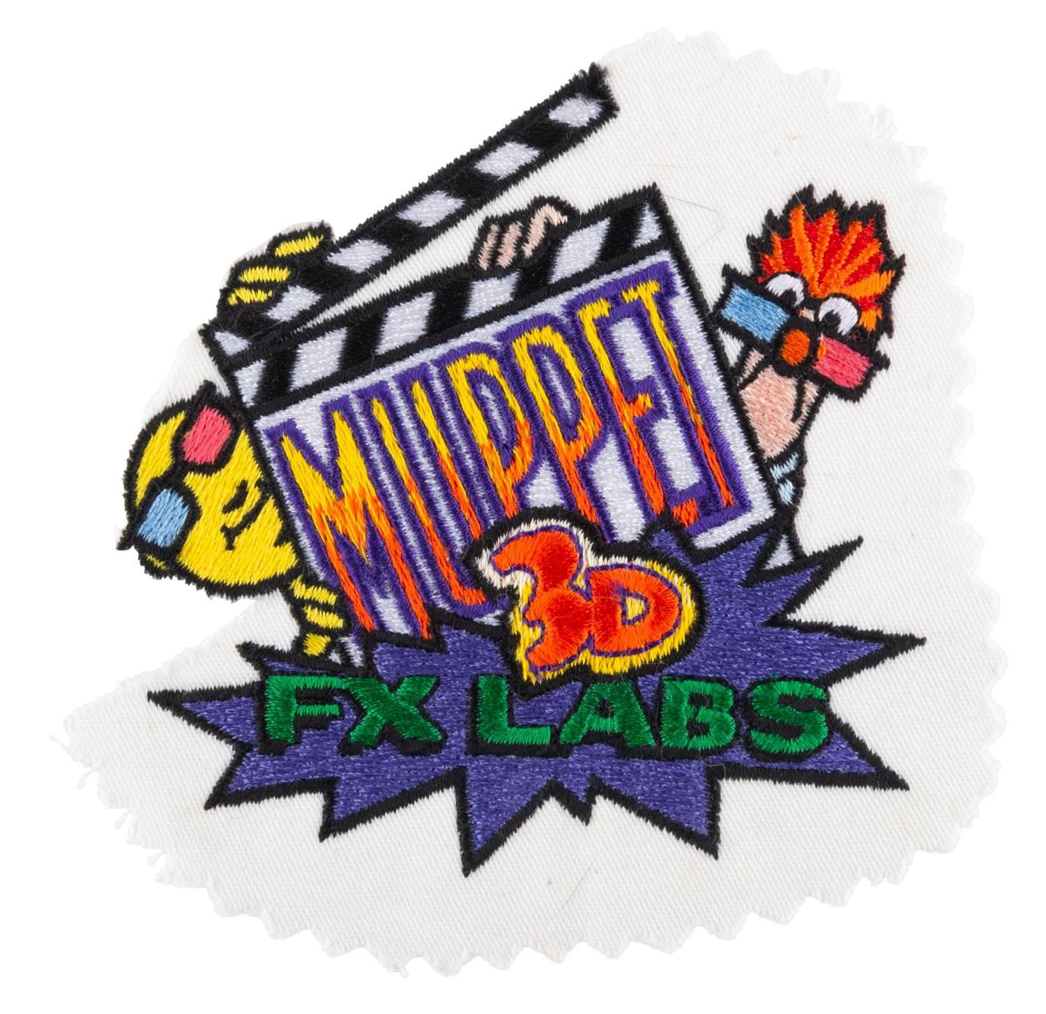 (Disney’s California Adventure, 2009) A patch of the Muppet 3D FX Labs logo seen in Disney’s California Adventure in 2009, likely removed from a Cast Member uniform. Measuring 4” x 4”, the patch is in very good condition with rough edges to the cloth.