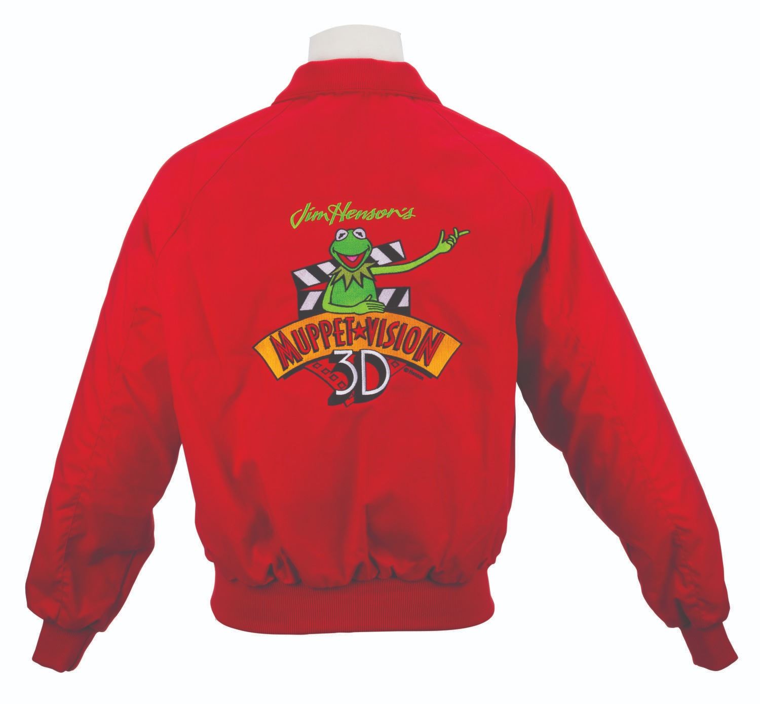 (Disney-MGM Studios, 1991) An original Cast & Crew jacket for Muppet*Vision 3D, the final project Jim Henson worked on. The beloved original Walt Disney World attraction closed this year, with Muppet fans worldwide making the pilgrimage to Orlando for one last show. The red jacket features Sweetums on the left chest and the attraction's logo embroidered on the back. Labeled a size L, the jacket is in very good condition with light wear.