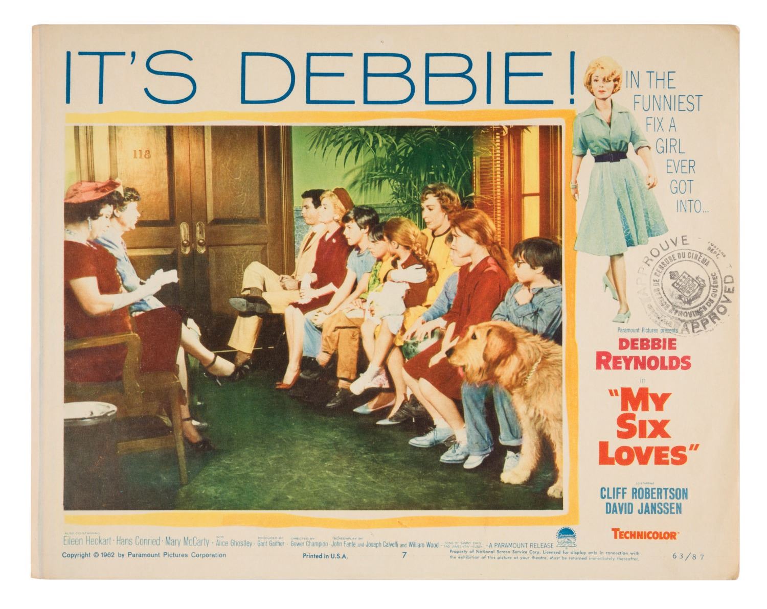 (Paramount, 1963) A lobby card for "My Six Loves." Measuring 11"x14", the lobby card is in very good condition, with yellowing and the slightest wear to edges and corners, and retains a "Bureau de Censure" stamp of Quebec.