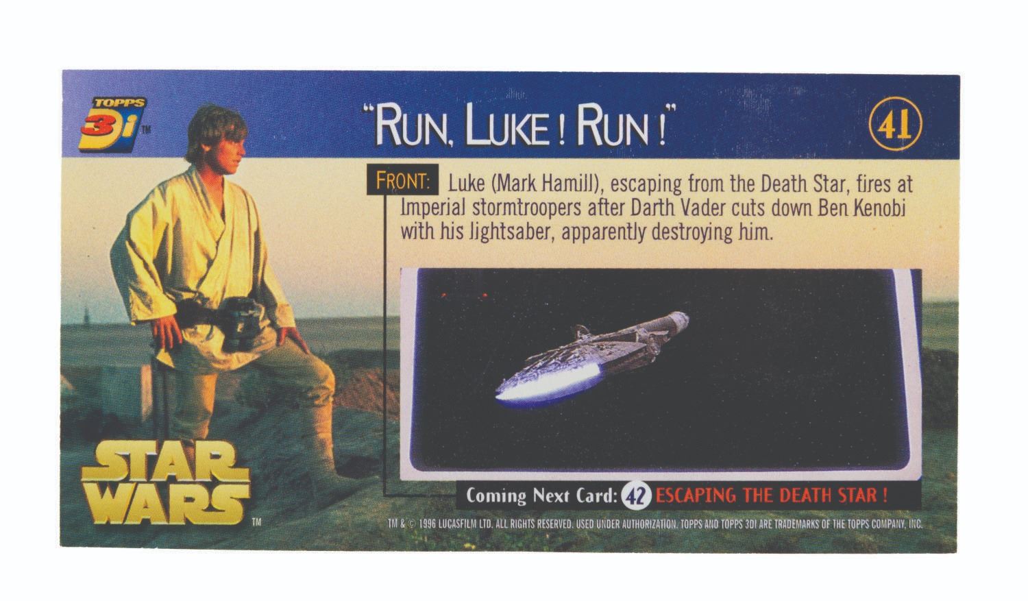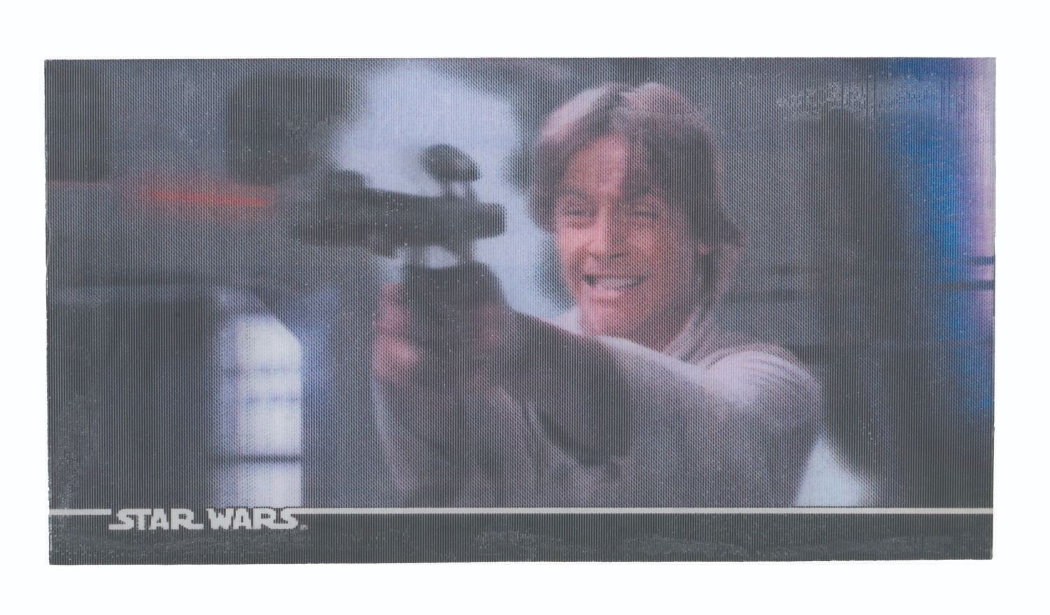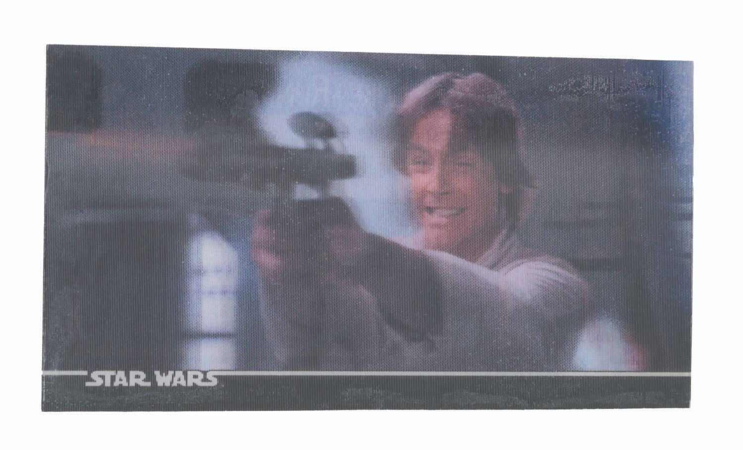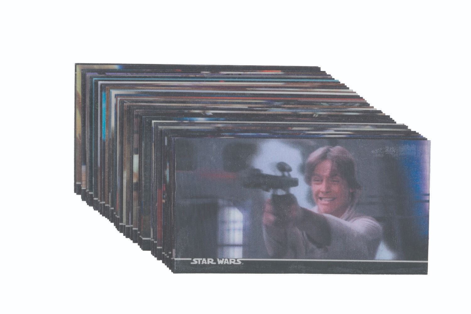 (Topps, 1996) A nearly complete set of Topps’ Star Wars lenticular wide vision cards. The 63-card set is missing only card number 61. Each measuring 2.5” x 4.75”, the 3-D cards are in very good to fine condition, some with very light edge wear.