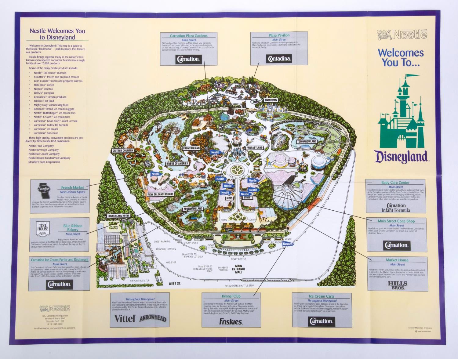 (Disneyland,1990s)A Nestle's Disneyland "take over" tri-fold brochure showing all Nestle locations in the park. The brochure is in very good lightly-handled condition.