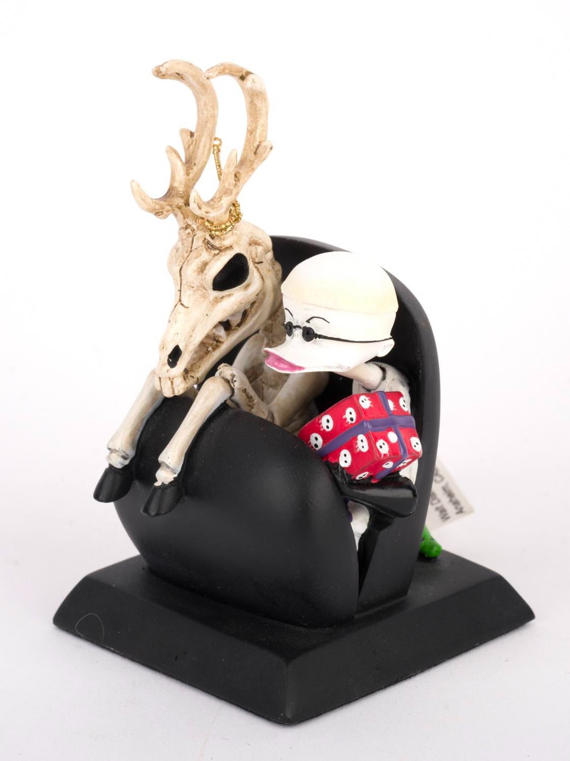 (Disney, 2000s) A resin minifigure of Dr. Finklestein and skeleton reindeer riding a Doombuggy, produced in the early years of the Haunted Mansion Holiday at Disneyland. The figure is in fine condition.