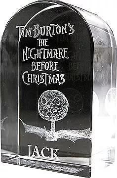 (NECA, 2004) An etched glass tombstone paperweight featuring Jack Skellington from “Tim Burton’s The Nightmare Before Christmas” produced by NECA in 2004. The 4" long paperweight is in fine condition and comes in its original box.