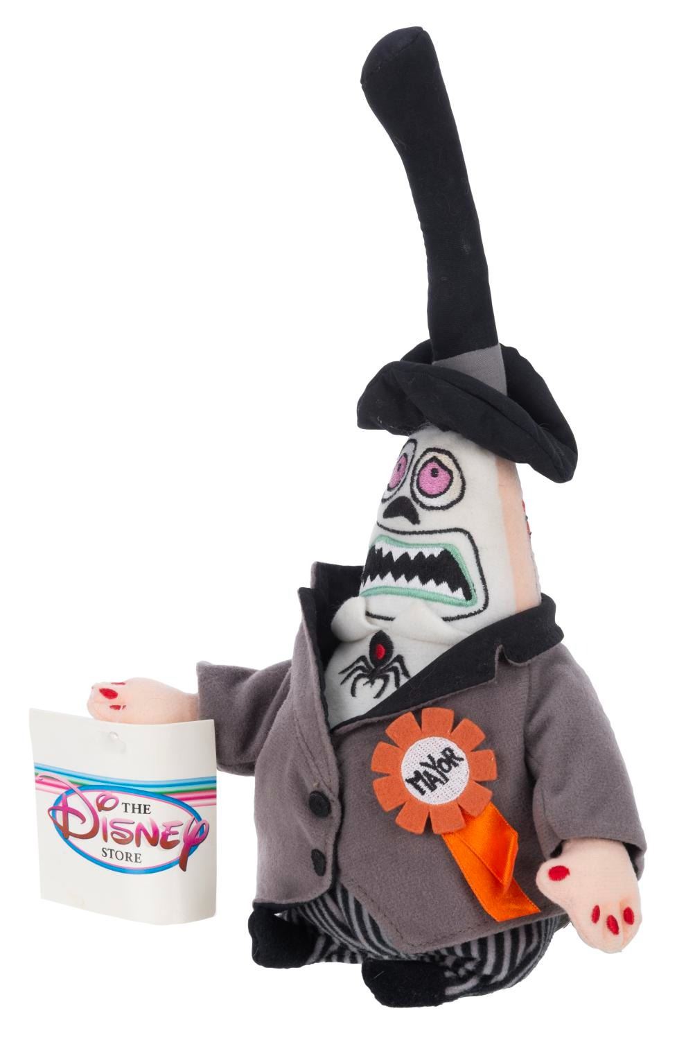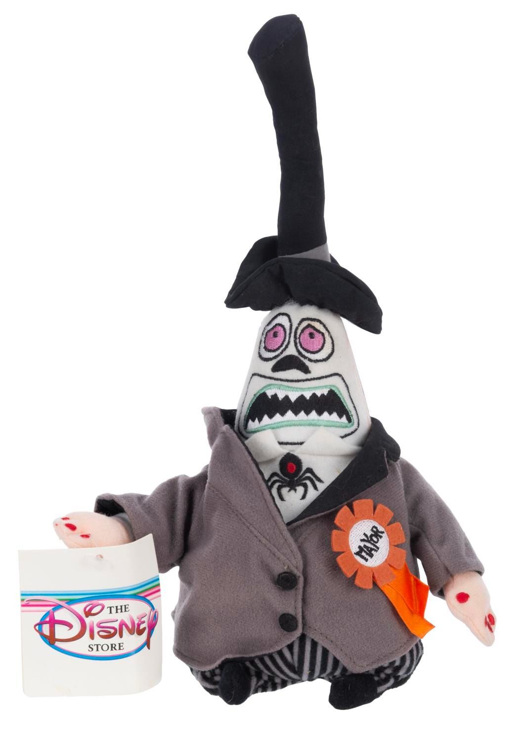 (Disney, 1990s-2000s) A "Tim Burton's The Nightmare Before Christmas" Mayor of Halloweentown plush. The Mayor's double-sided head features both of his faces and rotates a full 360 degrees. Measuring 12" tall, the plush is in fine condition with its original Disney Store tags with light creasing.