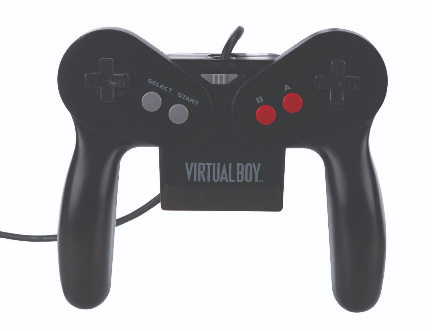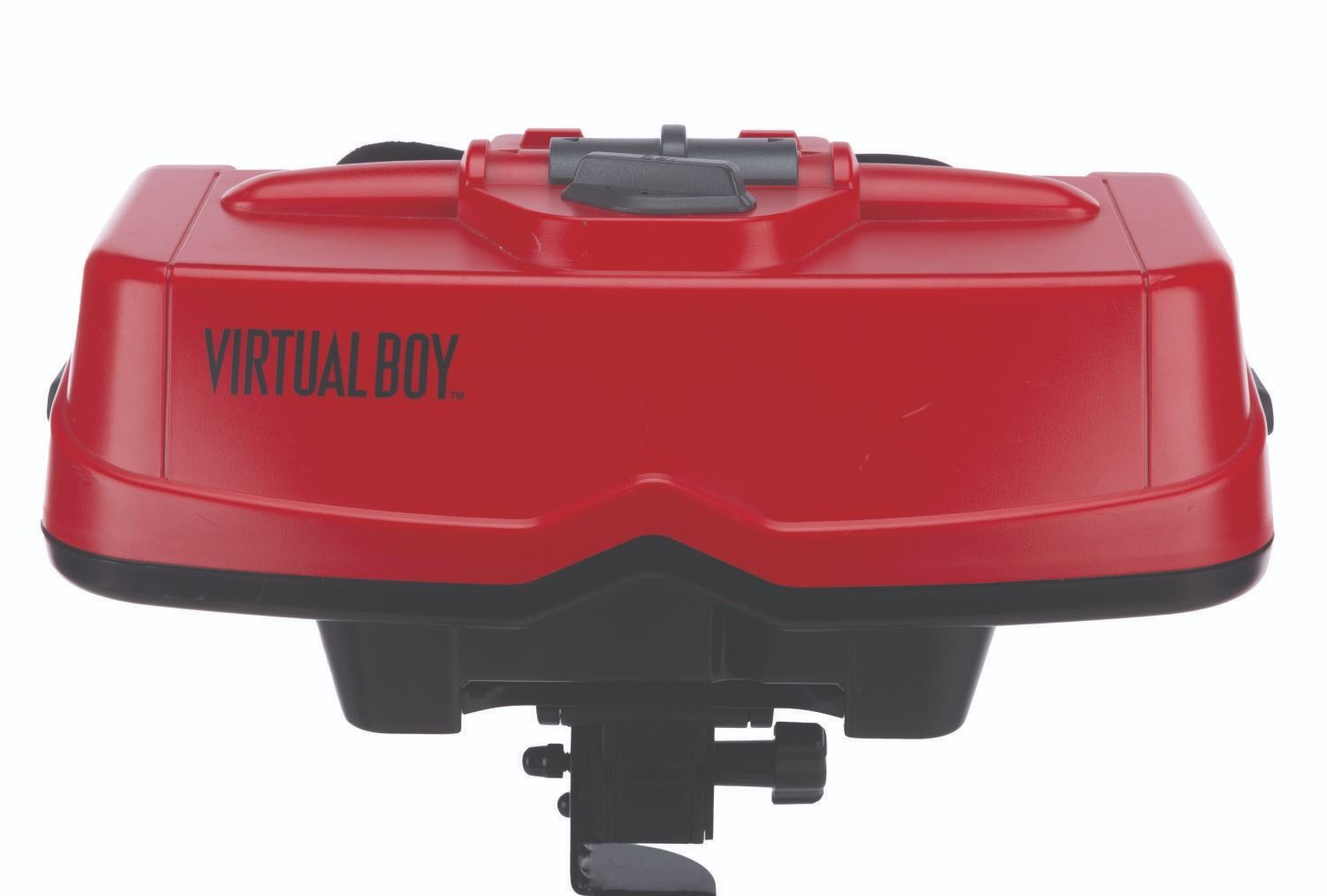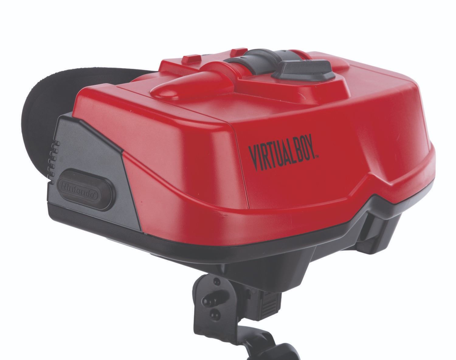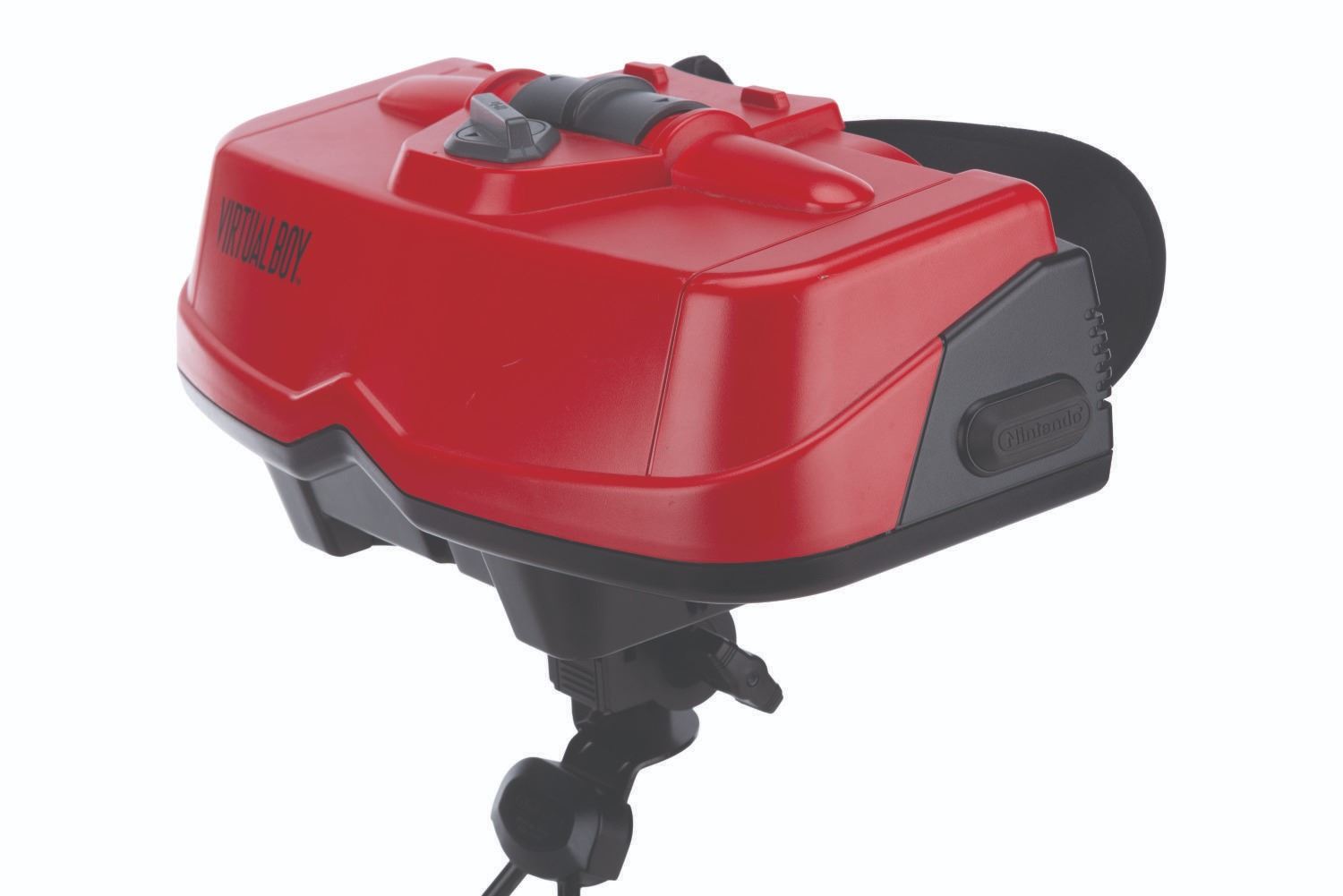 (Nintendo, 1995) An original Nintendo Virtual Boy, a virtual reality game console. Virtual Boy was the first video game console of its kind, delivering games in amazing, stereoscopic 3D in what Nintendo claimed would "totally immerse players into their own private universe." Included in the set are the Virtual Boy headset, a controller with battery holder, a mounting bracket, and two desktop stands. The console operates on six"AA" batteries (not included), and without games, the console is in untested condition and may require service. Measuring 10" x 10.5" x 13" tall, when assembled, the console is in good condition with light evidence of usage, including soiling, scratches, and creasing of the foam eye cup.