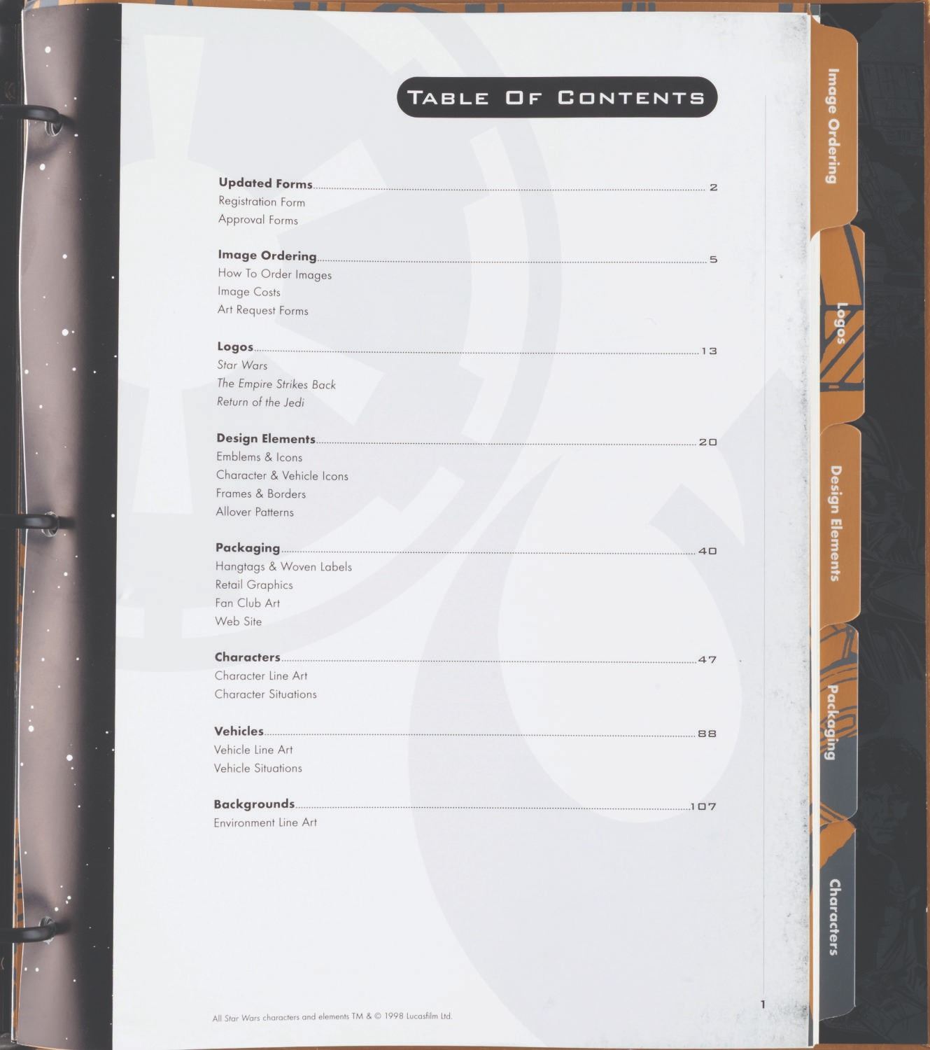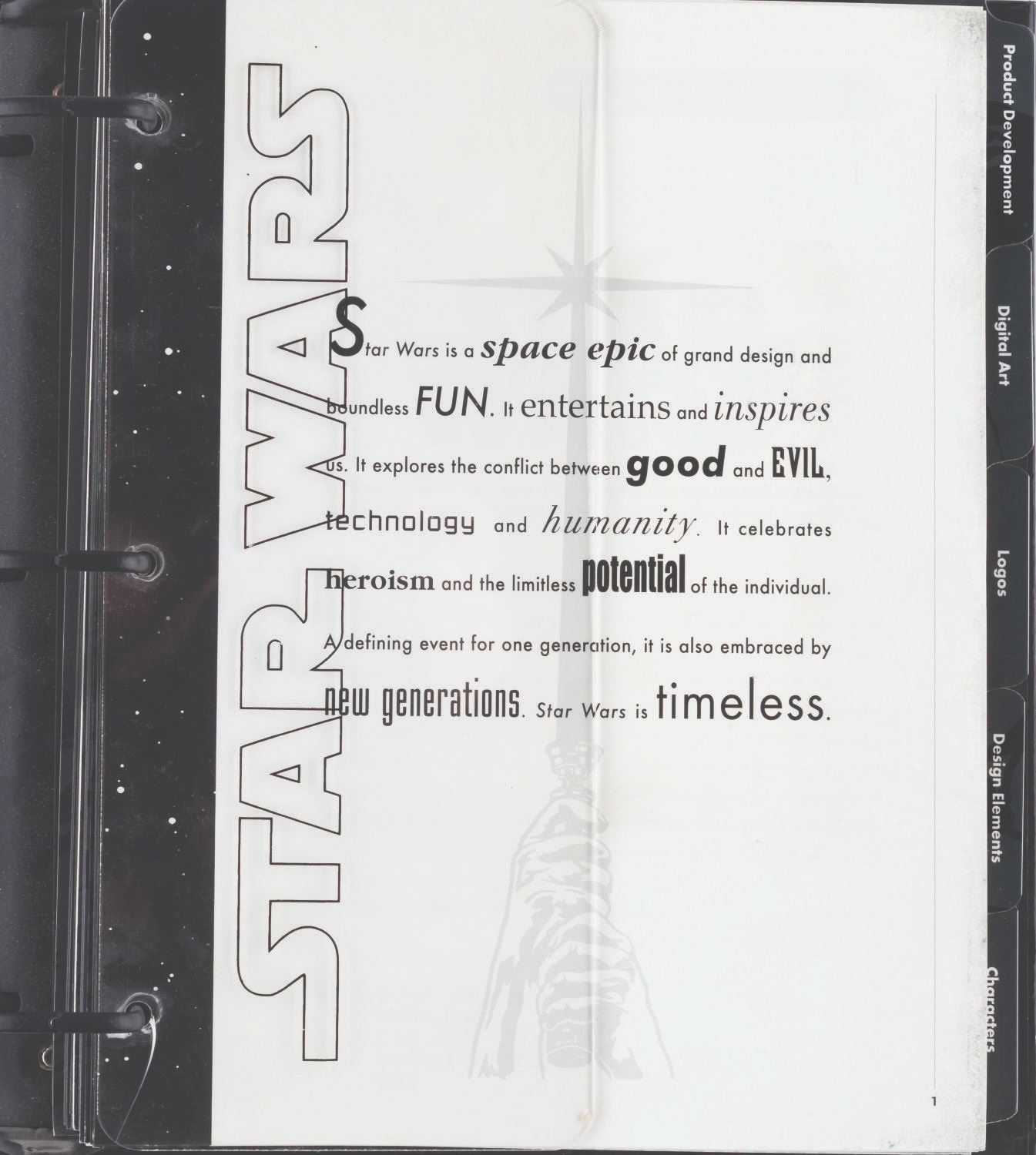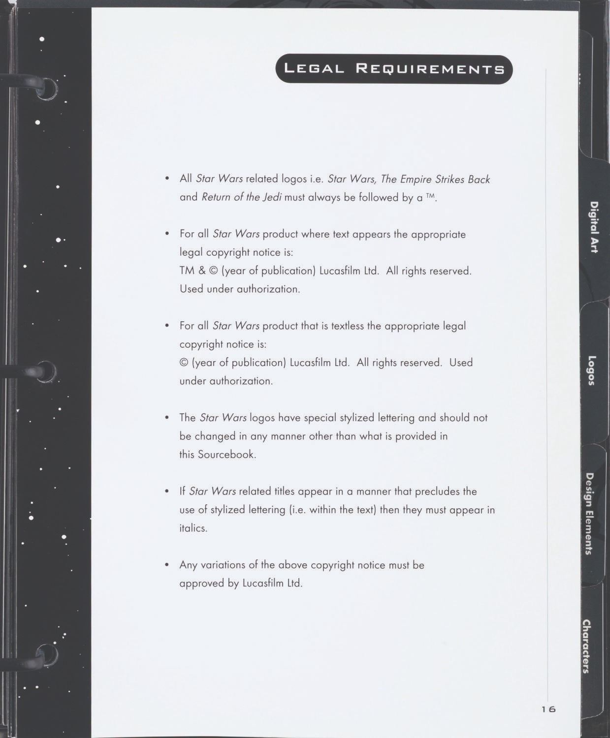 (Lucasfilm, 1998) Two Star Wars Sourcebooks, released by Lucasfilm in 1996 and 1998, with line art, logos, and guidelines for licensees to develop Star Wars merchandise. The 1996 Star Wars Sourcebook contains 206 pages of assets towards celebrating the 20th anniversary of the franchise in 1997. The Star Wars Sourcebook Update from 1998 includes two CD-Roms with digital files of the artwork, and 127 pages that include new logos for the Trilogy Special Edition Home Video releases. Each measuring 11" x 11.75" x 2.5" and 3.5", the guides are in very good condition overall, with interior pages in near-fine condition, and the covers with typical scuffs and edge wear from production use.