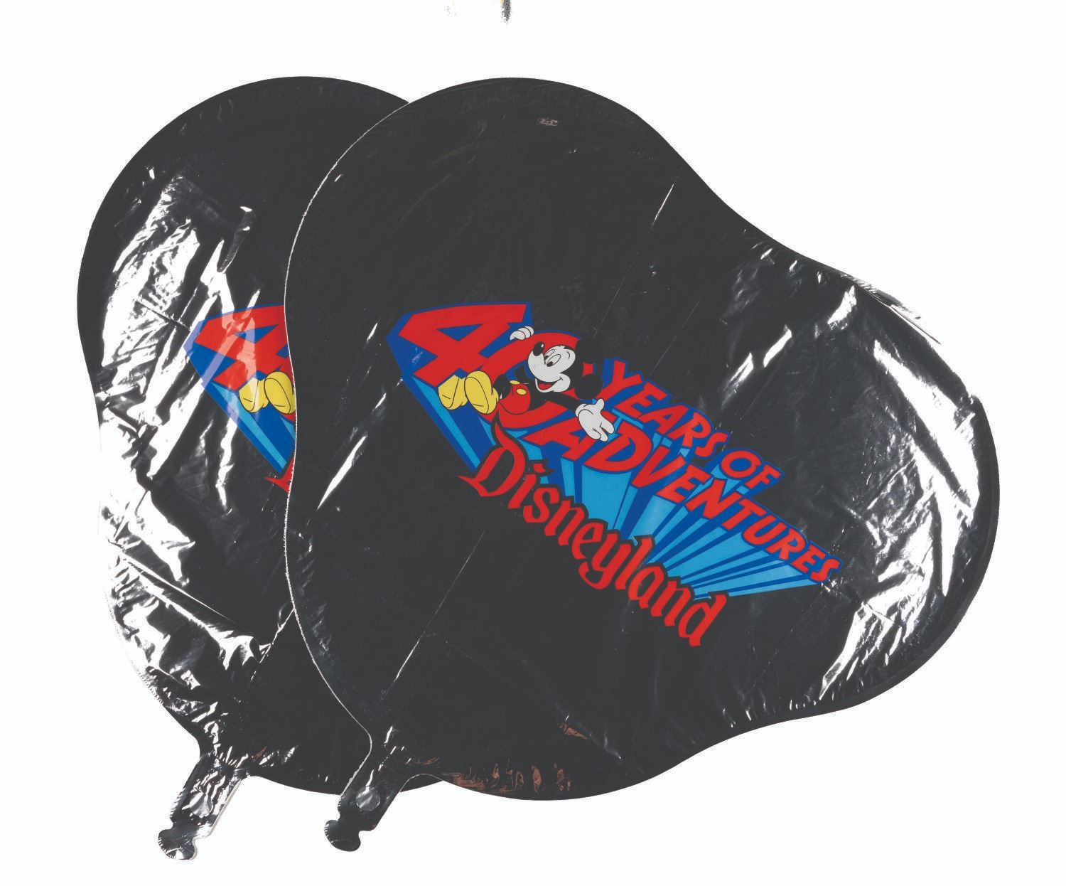 (Disneyland, 1995) A pair of unused mylar balloons featuring the "40 Years of Adventure" logo from Disneyland's 1995 anniversary. Measuring 24" x 25.5", the balloons are in fine condition.