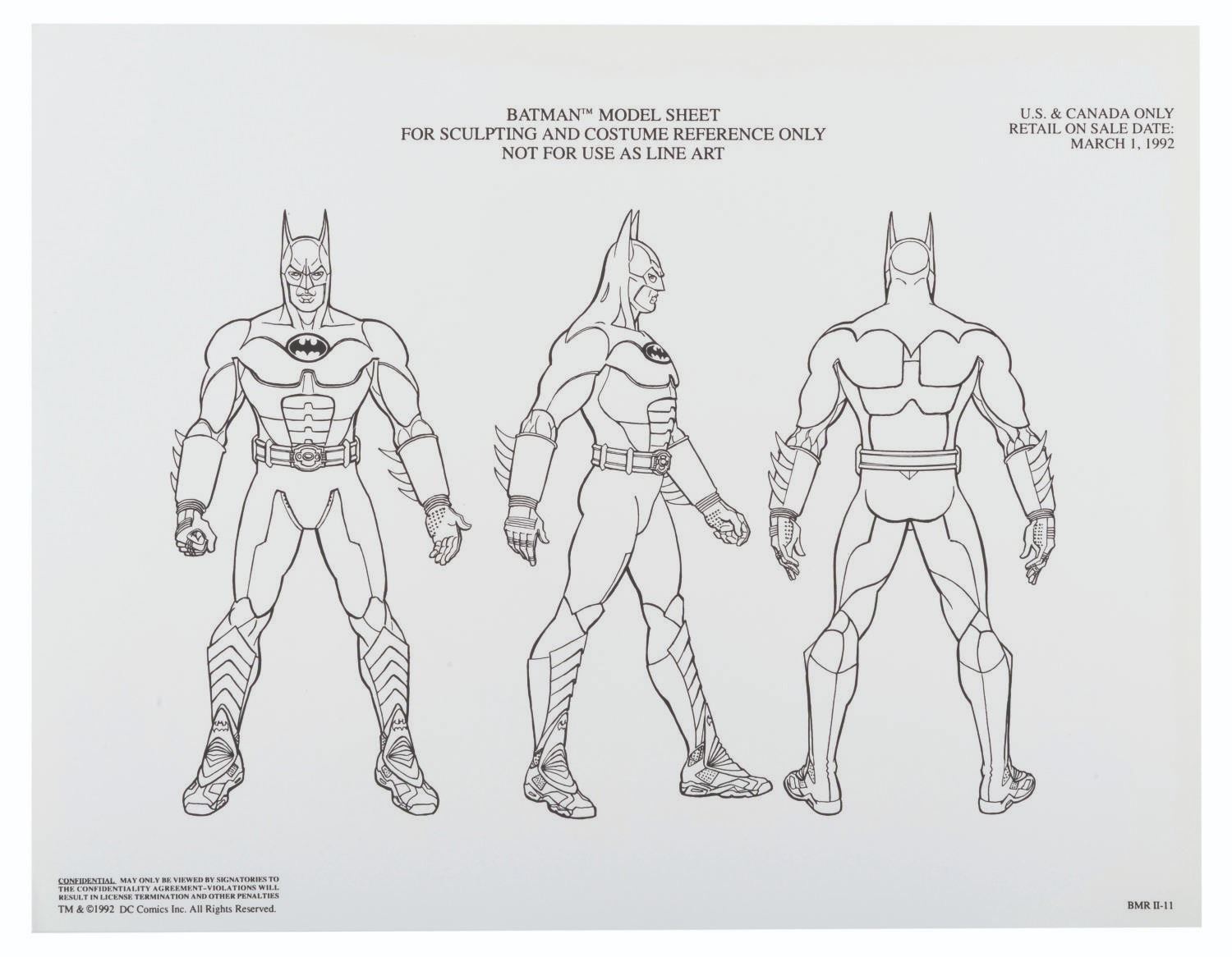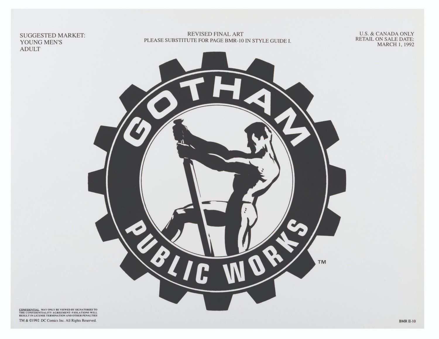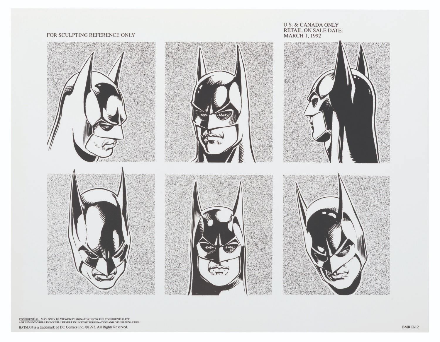 (Warner Bros., 1990s) A pair of style guides for the 1992 film "Batman Returns, " sent to licensees and Warner product departments to develop merchandise and promotional materials for the film. Style Guide 1 includes a cover letter on DC letterhead, and 55 loose pages of character art, logos, props, and backgrounds for the film. Style Guide 2 with 105 loose pages provides more artwork including Penguin Commandos, Circus Gang Motorcycles, and Gotham City skylines and backgrounds. Together these provide fascinating insight into the marketing of the film. Each in a folder measuring 9.75 " x 11.75 ", the style guides are in very good condition with typical wear from production use, mostly from creases and scuffs to the outer folders.