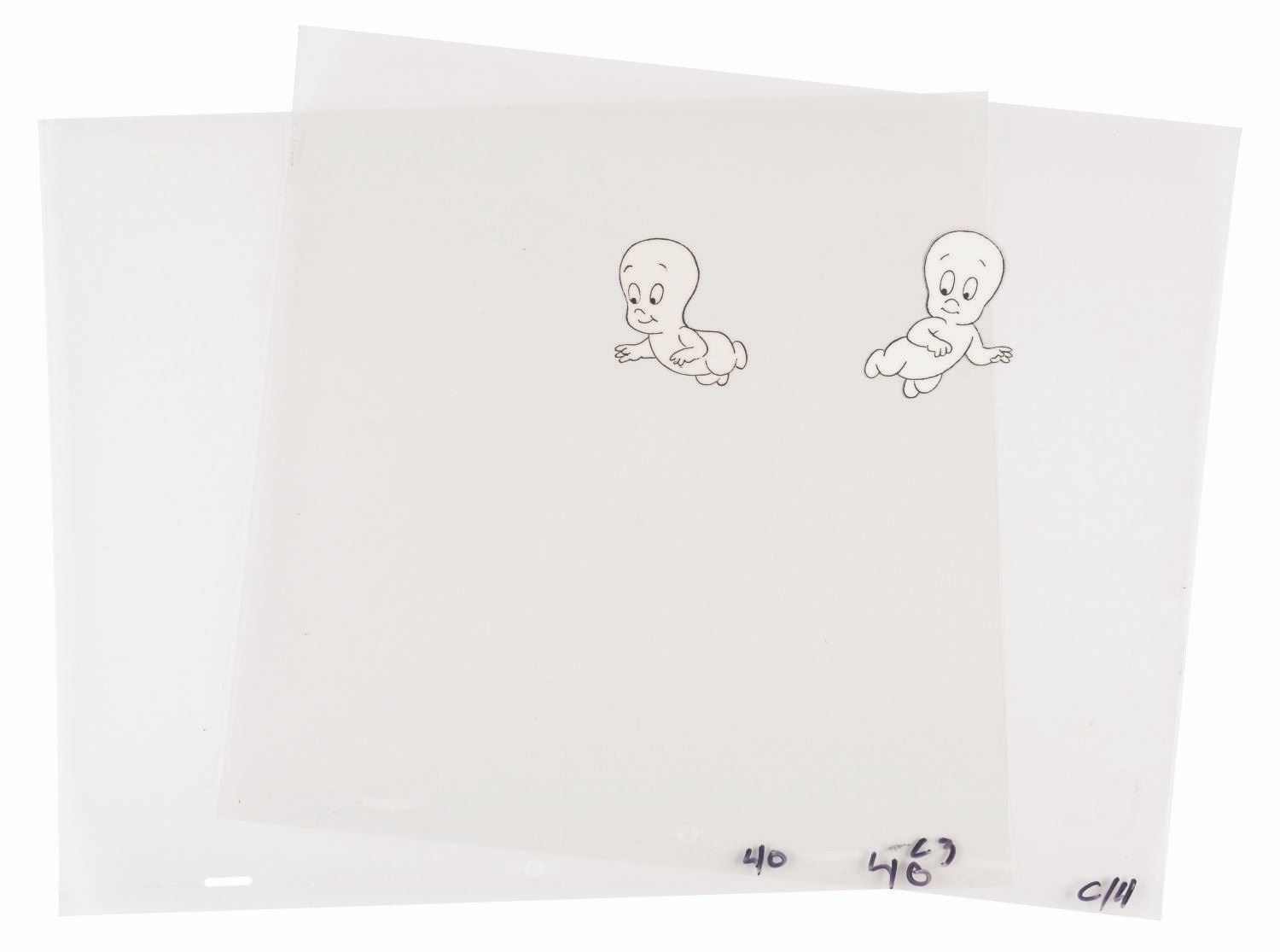 (Hanna-Barbera, 1979) A pair of original production cels from “Casper and the Angels.” Measuring 10.5” x 12.5” with a character image size of 2” x 1.75” and 2.25” x 2”, the cels are in fine condition.