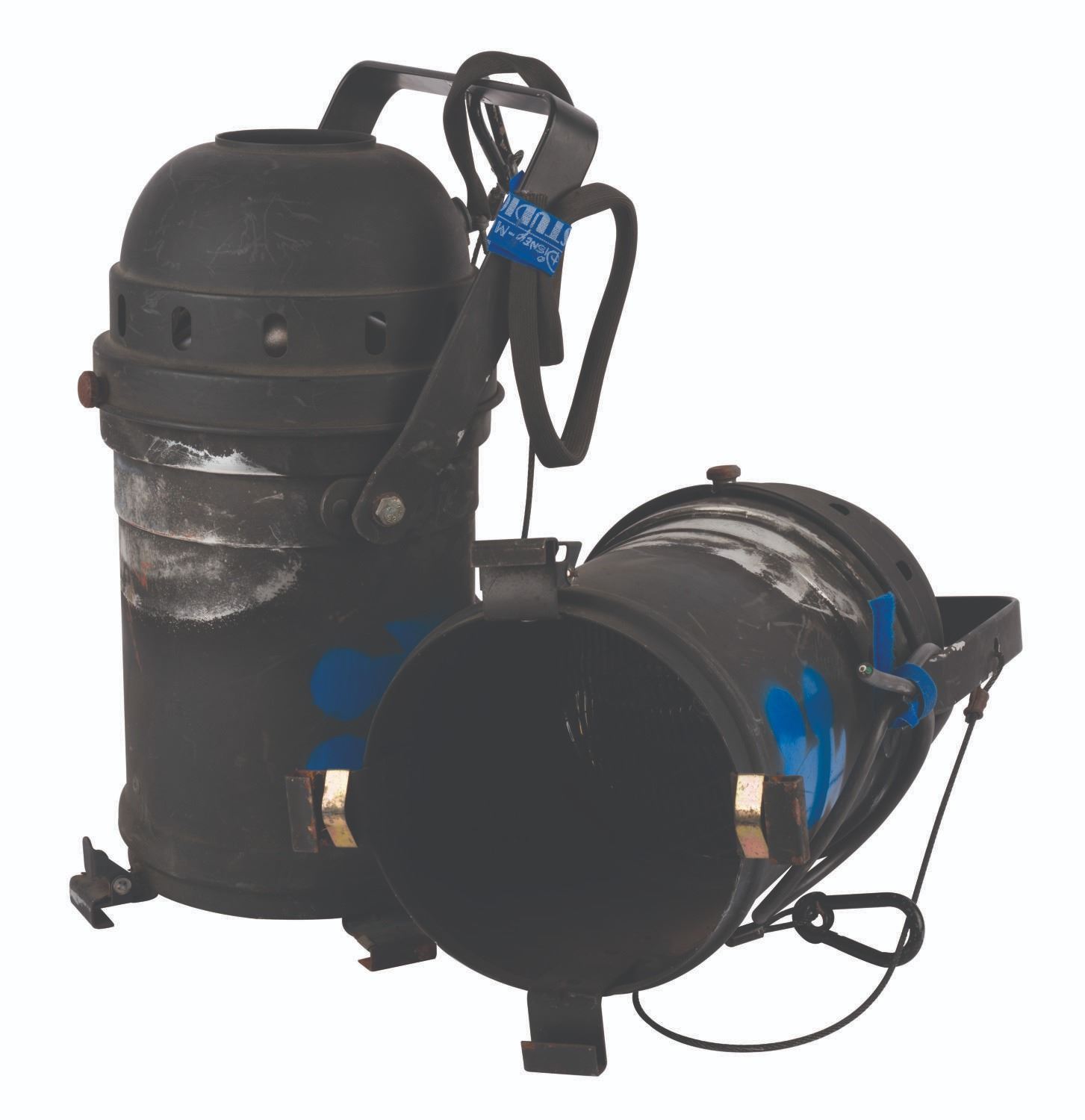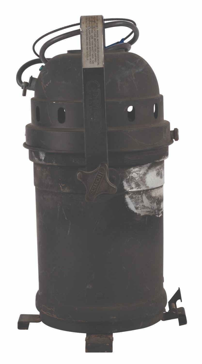 (Disney-MGM Studios, 2000s) A pair of Thomas Parabolic Aluminized Reflector Lights from Disney-MGM Studios at Walt Disney World. Both lights are painted black and retain their original velcro property labels. Measuring 16.75" long and 10.25" wide, each studio fixture has an adjustable handle and is in very good condition, with minor scuffs, scratches, and wear from Park use.