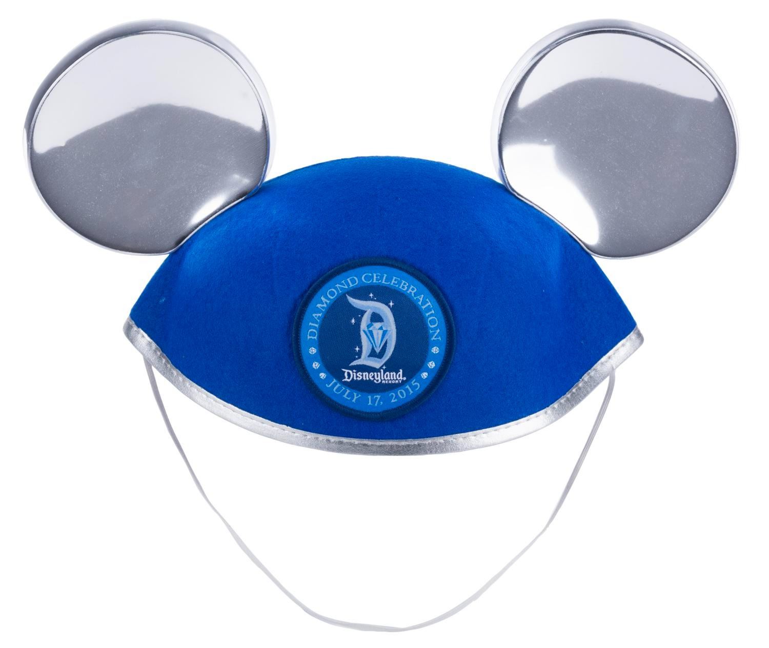 (Disneyland, 2015) A pair of special edition Mickey Mouse ears commemorating the 60th anniversary of Disneyland on July 17, 2015. Labeled a size adult, the ears are in good condition with creases and light wear.
