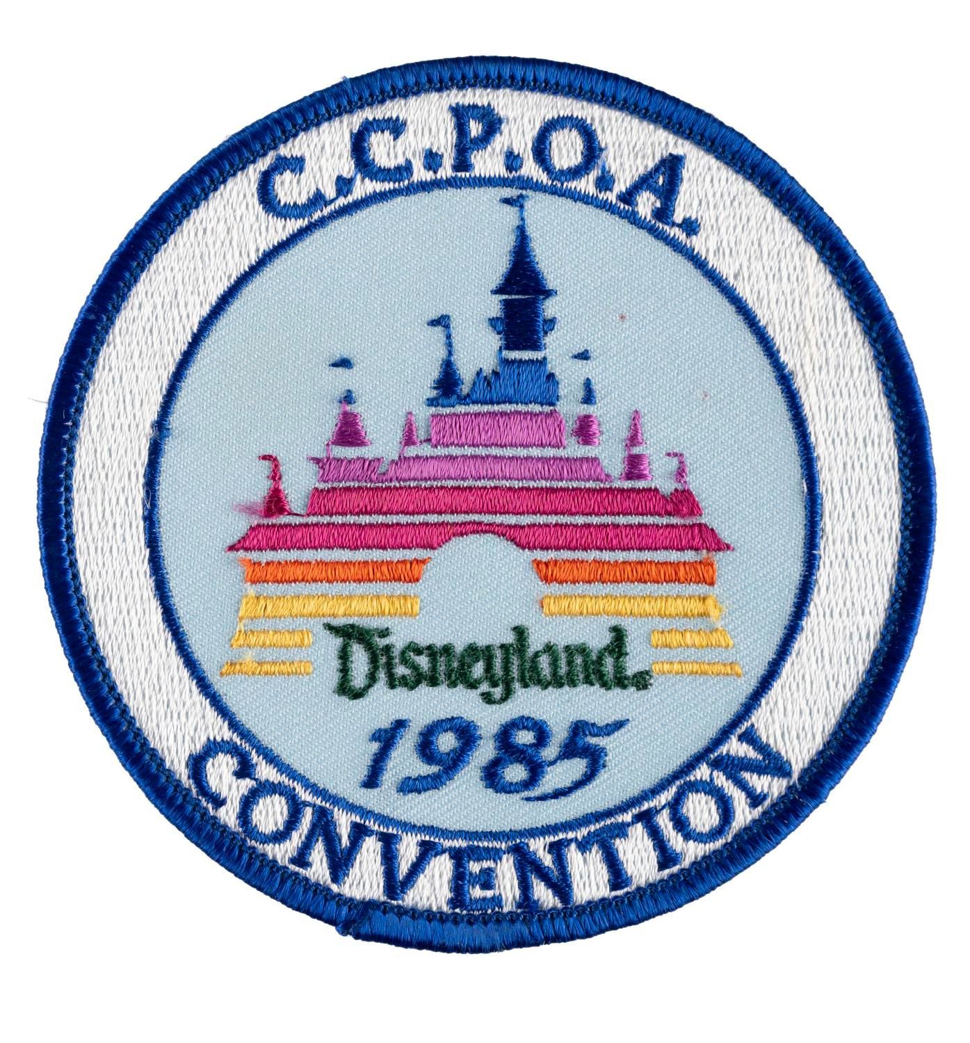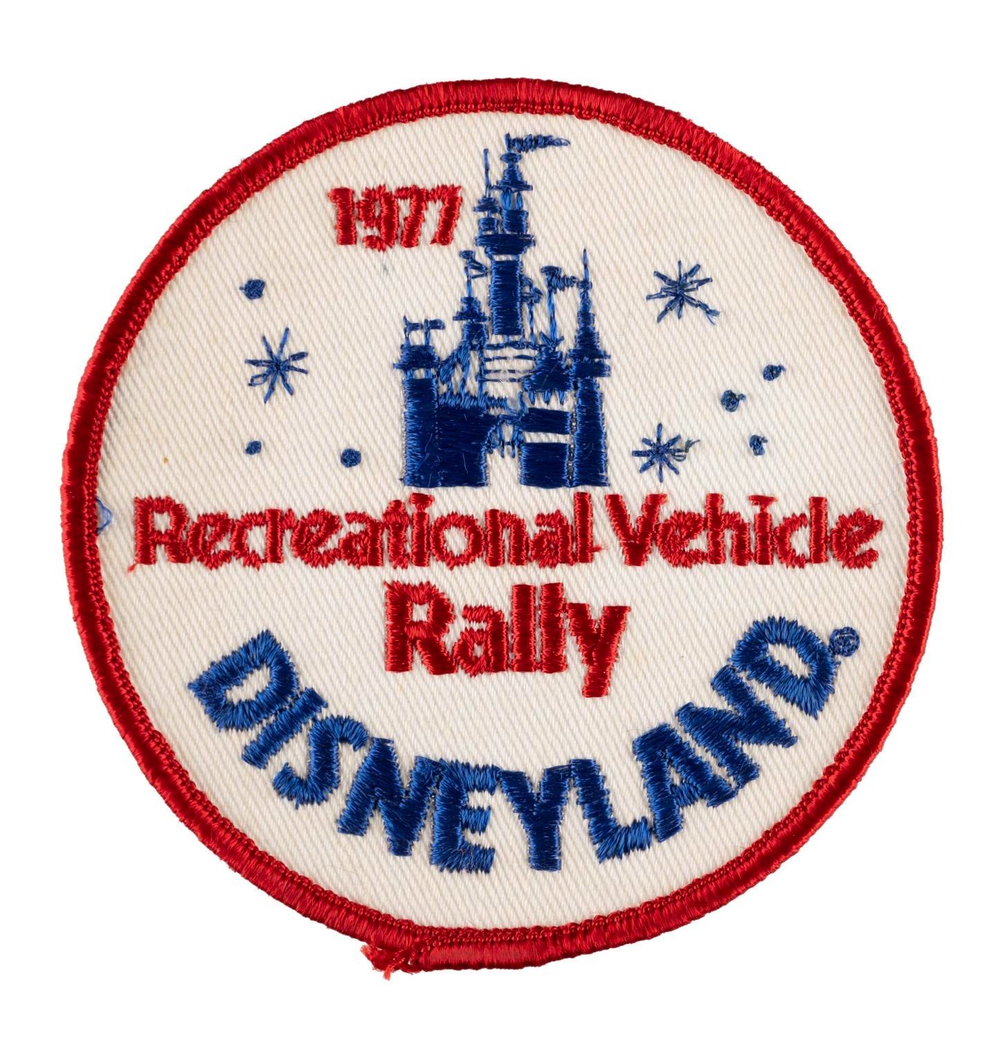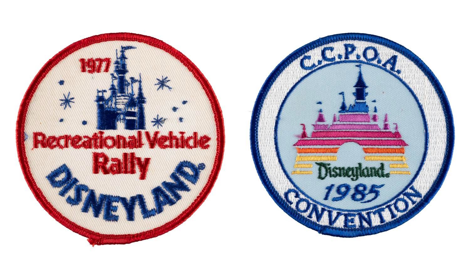 (Disneyland, 1977/85) A pair of Disneyland event patches commemorating the 1977 Vehicle Rally and the 1985 California Correctional Peace Officers Association Convention at Disneyland. Measuring 3.5" in diameter, each patch is in good condition exhibiting minor fading and wear.
