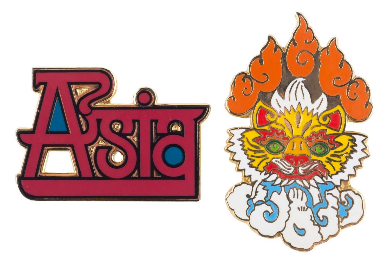 (Disney’s Animal Kingdom, 1998-2000) A pair of early Animal Kingdom Asia pins with logos for "Asia” and "Kali Rapids.” the pins are in very good to fine condition.