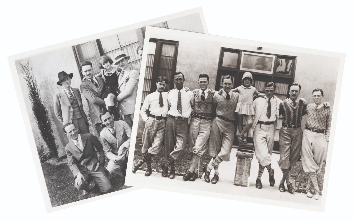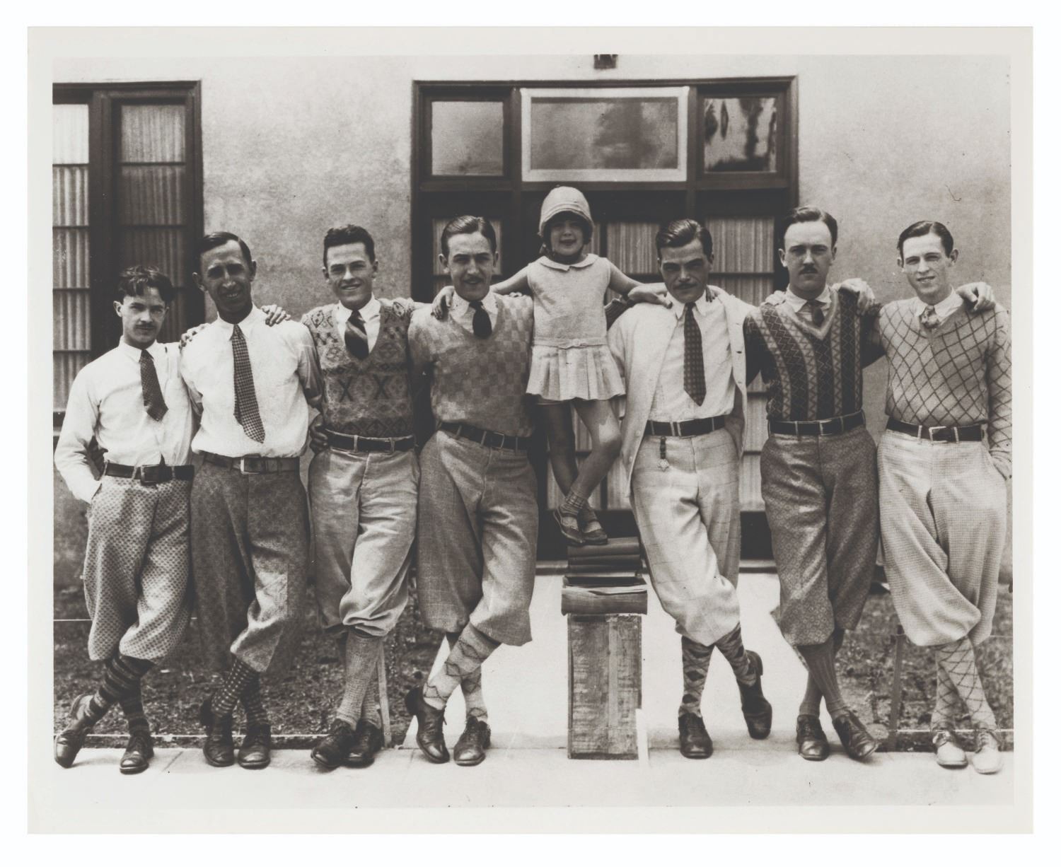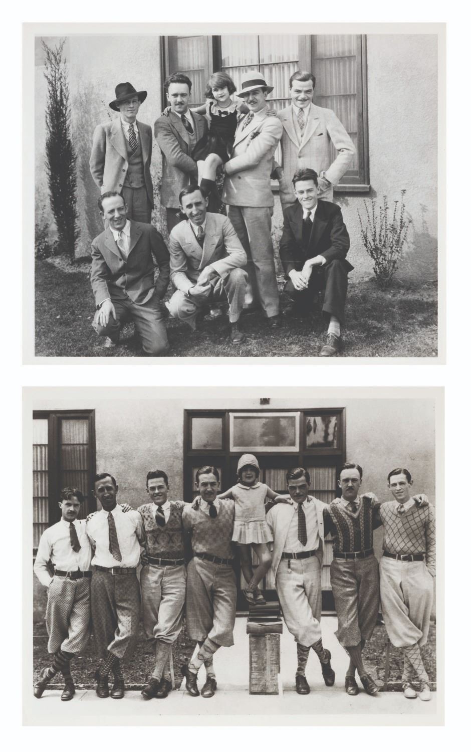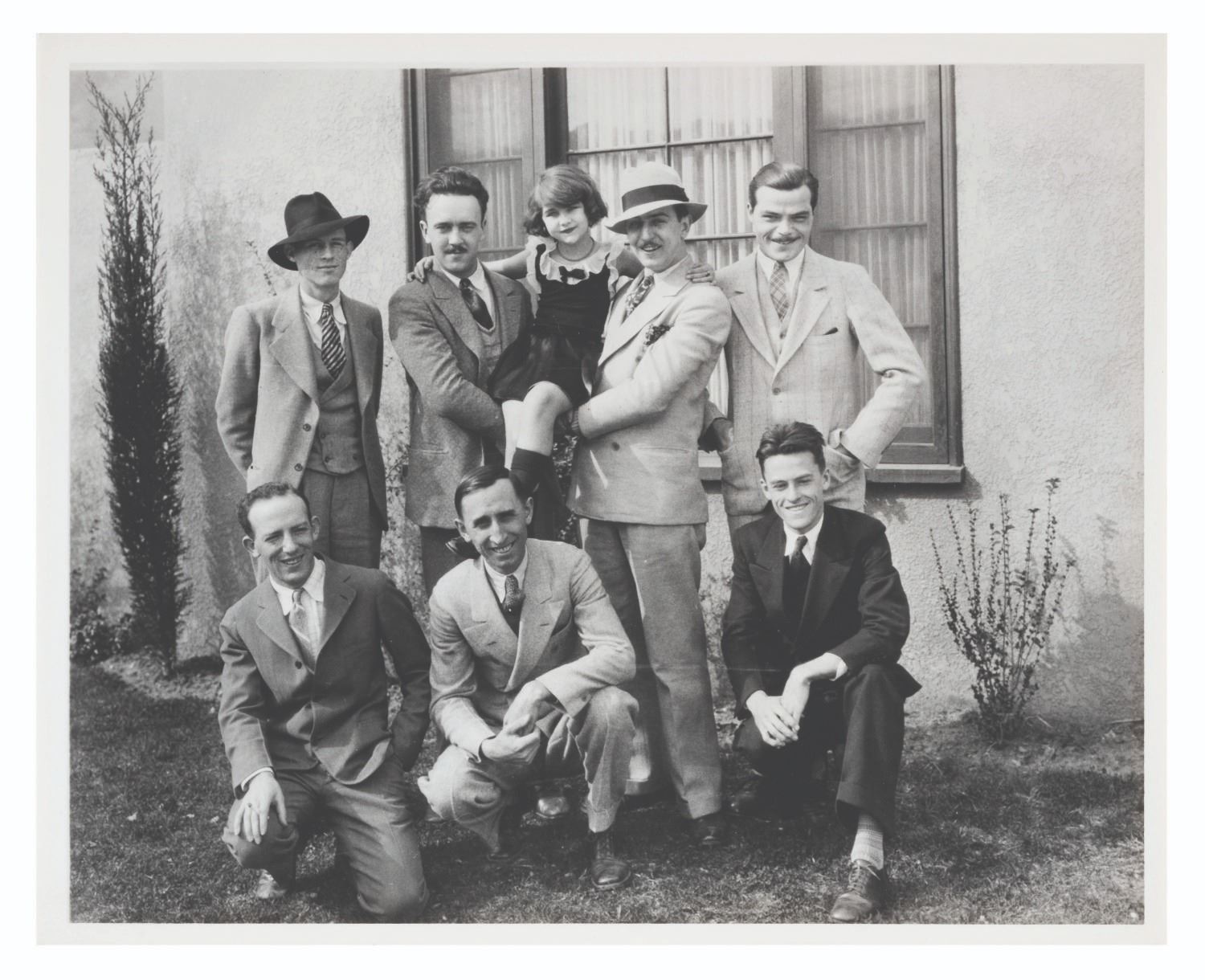 (Disney, 1925-26) A pair of photos of Walt Disney and Studio Staff posing with Margie Gay, who starred in 31 Alice Comedies in 1925 and 1926. One photo poses Margie on a stack of books beside Walt, along with Ham Hamilton, Roy Disney, Hugh Harman, Rudolf Ising, Ub Iwerks, and Walker Harman. The other features Walt and Margie with Walker Harman, Ub Iwerks, Lois Hardwick, Rudolf Ising, Friz Freleng, Roy Disney, and Hugh Harman. The photos were likely made at the Disney Studio in the 1960s or 1970s, and come from the estate of Bob Clampett. Measuring 8” x 10” each, the photos are in very good condition.