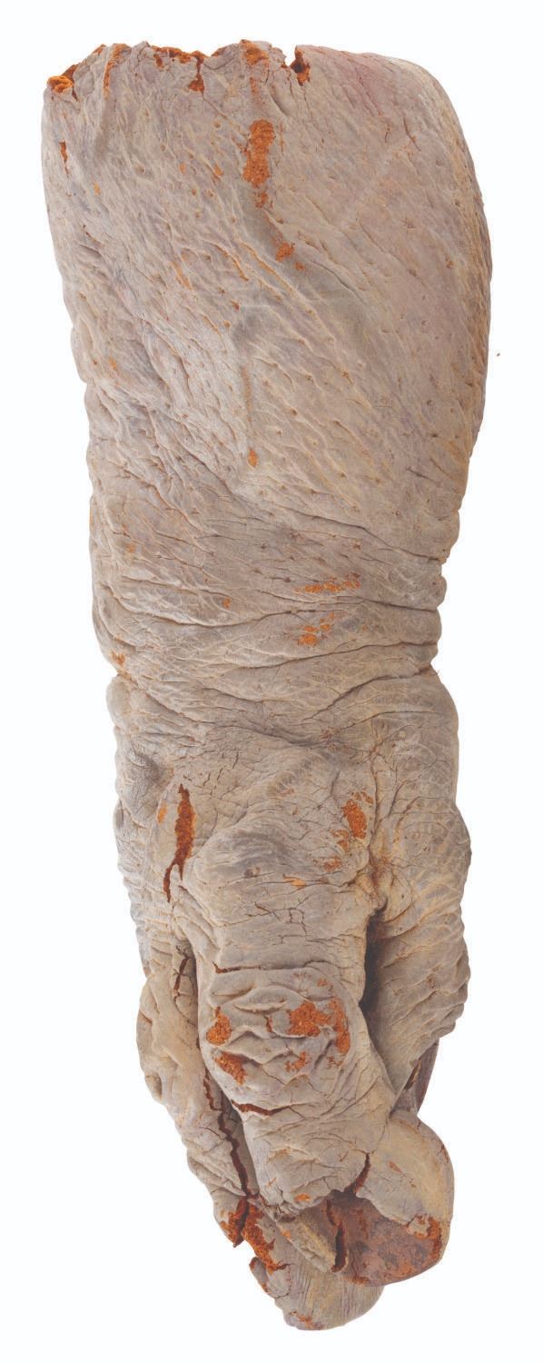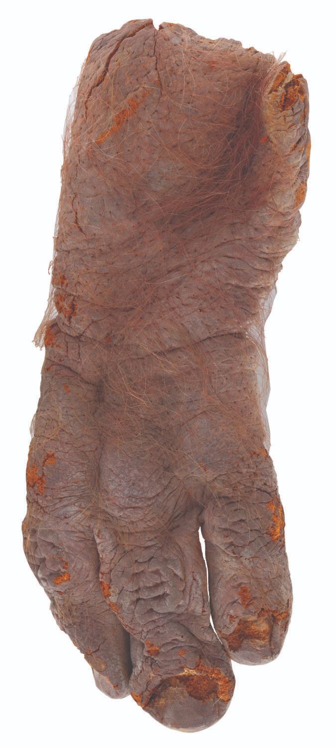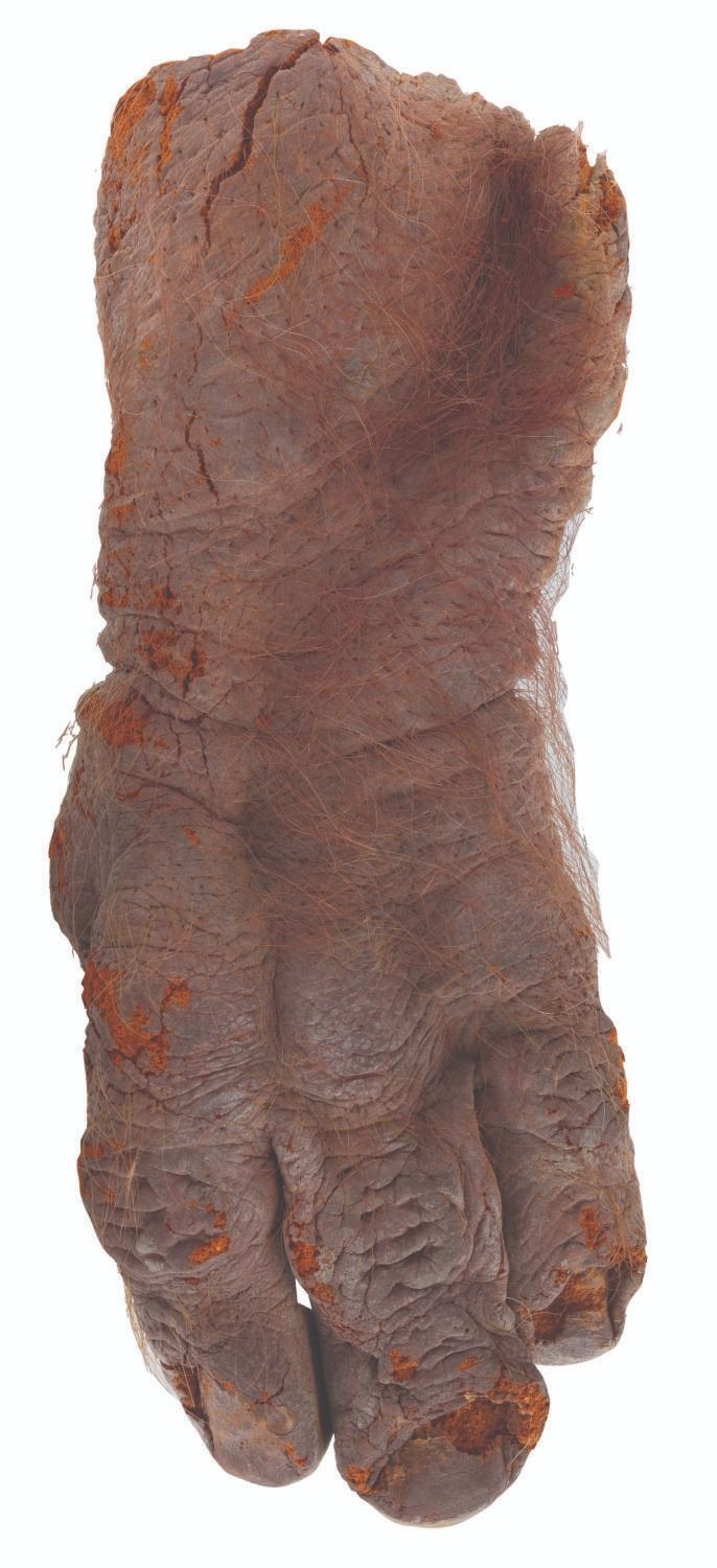 (Touchstone, 1991) A pair of troll costume hands made by creature effects experts, the Chiodo Brothers, for Jim Varney's Halloween comedy "Ernest Scared Stupid." Measuring 12.5" long, the hand-painted foam hands are in fair condition with heavy flaking, material loss, cracks throughout, paint loss, and wear from production use.