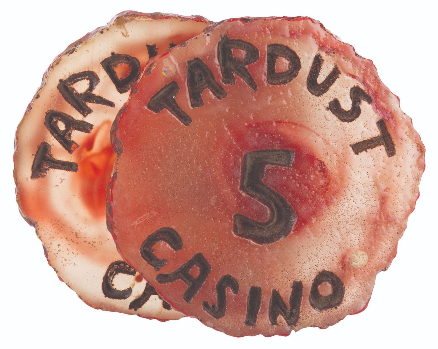 (Universal, 2000) A pair of Tardust Casino $5 chips from the production of “The Flintstones in Viva Rock Vegas.” Measuring 3.75” in diameter each, the acrylic casino chips are in good condition with typical spots of paint loss, scuffs, stains, and wear from production use.