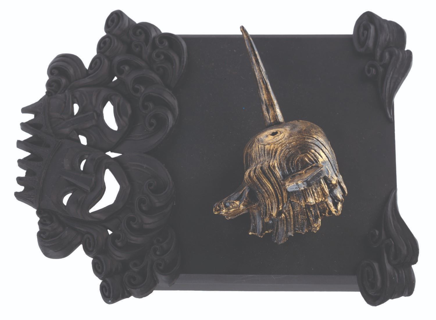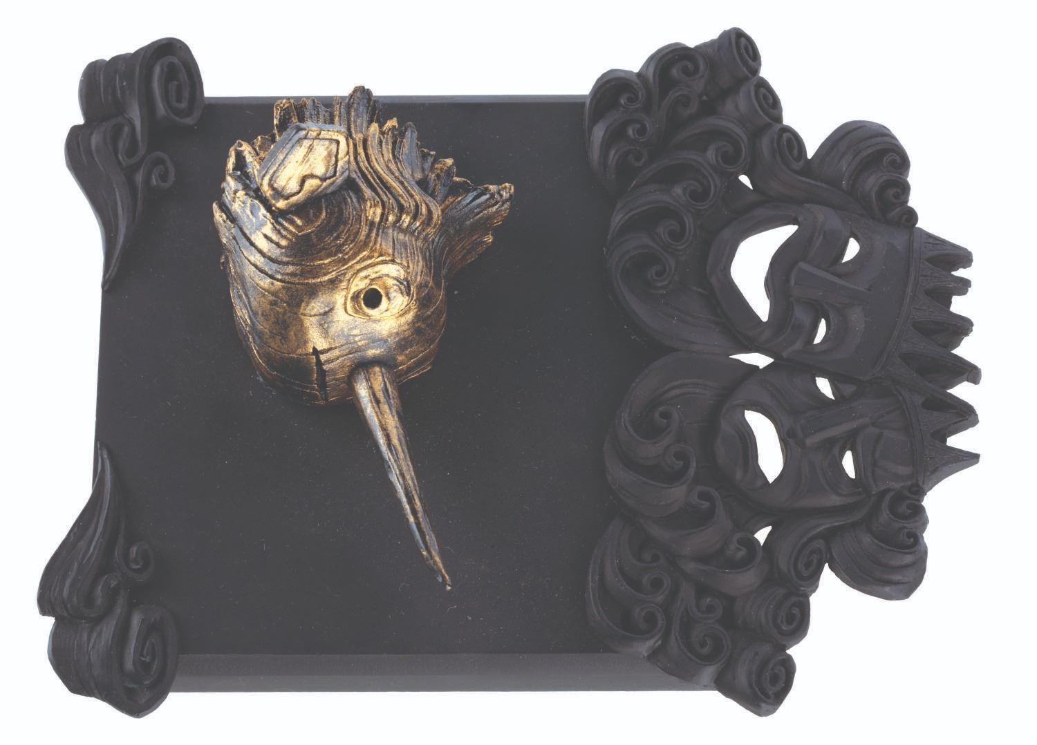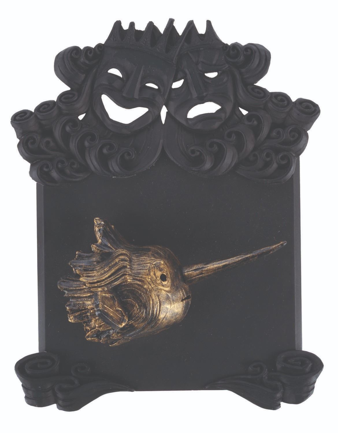 (Netflix, 2022) A pair of Guillermo Del Toro’s “Pinocchio” crew gifts, including a display plaque with the 3D likeness of Pinocchio and a deck of playing cards. The playing card’s label refers to PDX and GDL, Portland, Oregon, and Guadalajara, Mexico. Guadalajara is Guillermo’s hometown, and it also served, along with Portland, as a filming location for the film. Measuring 5” x 6.5”, the plaque is in very good condition, while the playing cards measuring 2.5” x 3.5” are in good condition.