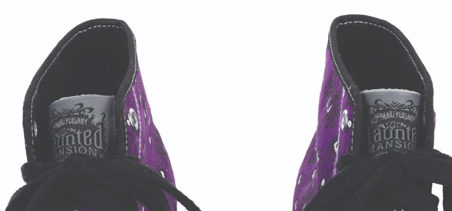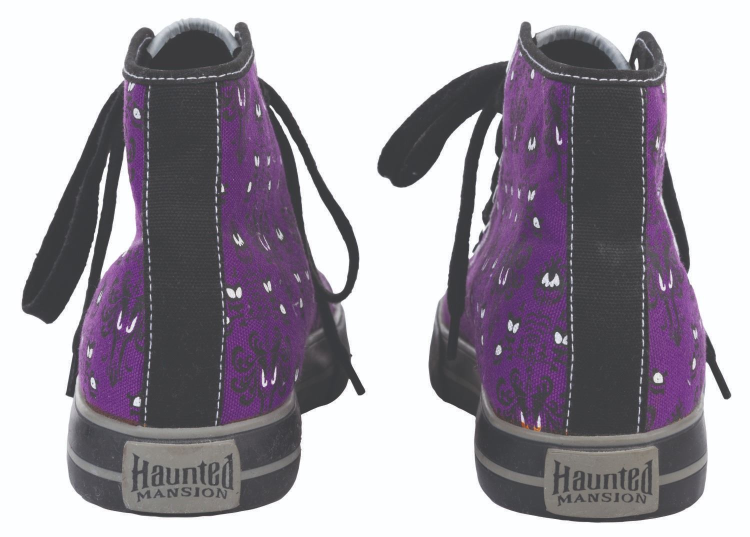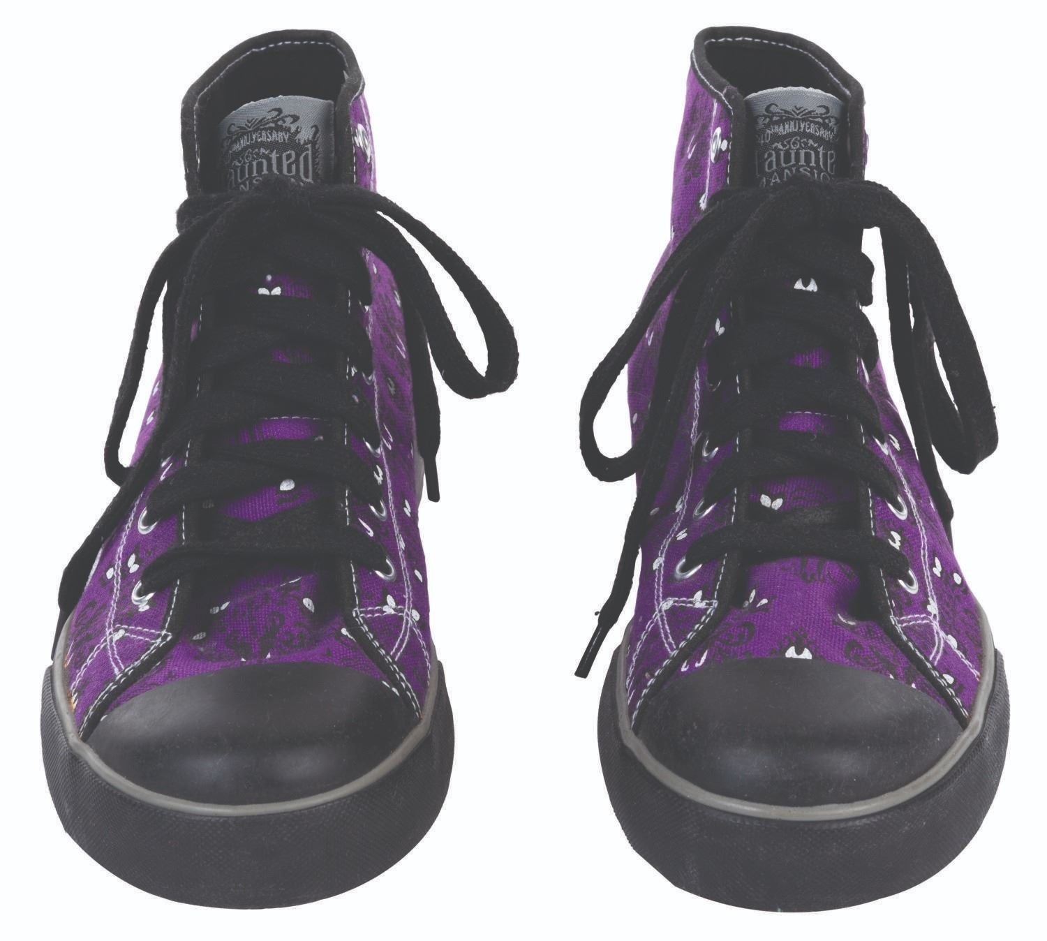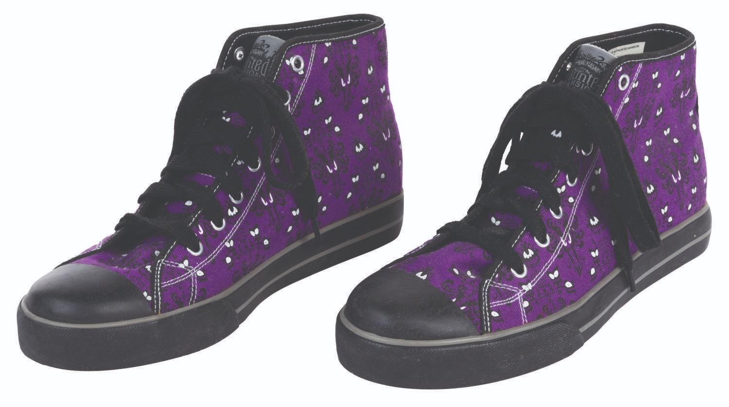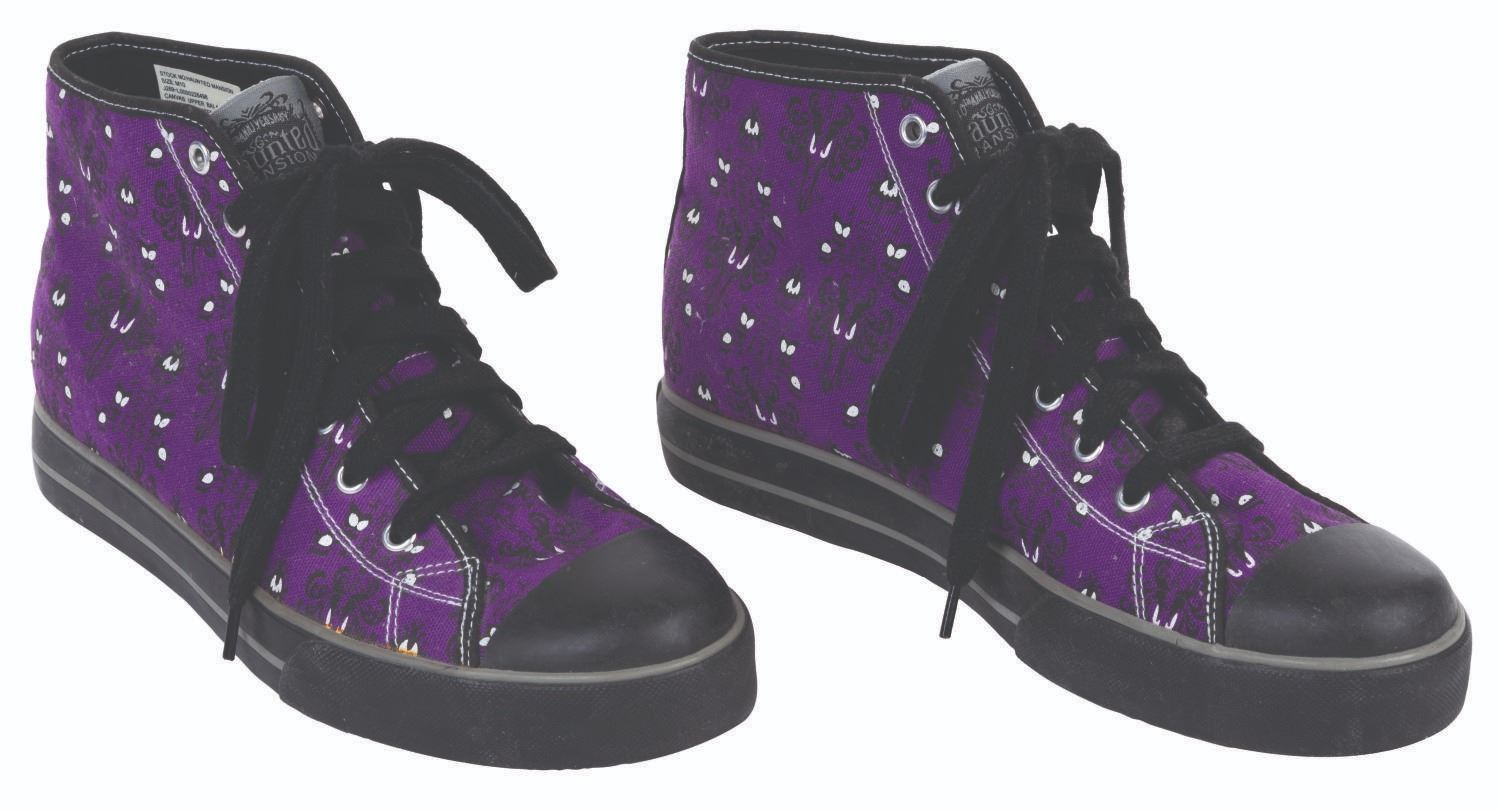(Disney, 2009) A pair of The Haunted Mansion 40th anniversary high-top sneakers featuring the attraction’s memorable wallpaper pattern. Labeled a size M10, the shoes are in good condition with light scuffs, scratches, discoloration, and wear.
