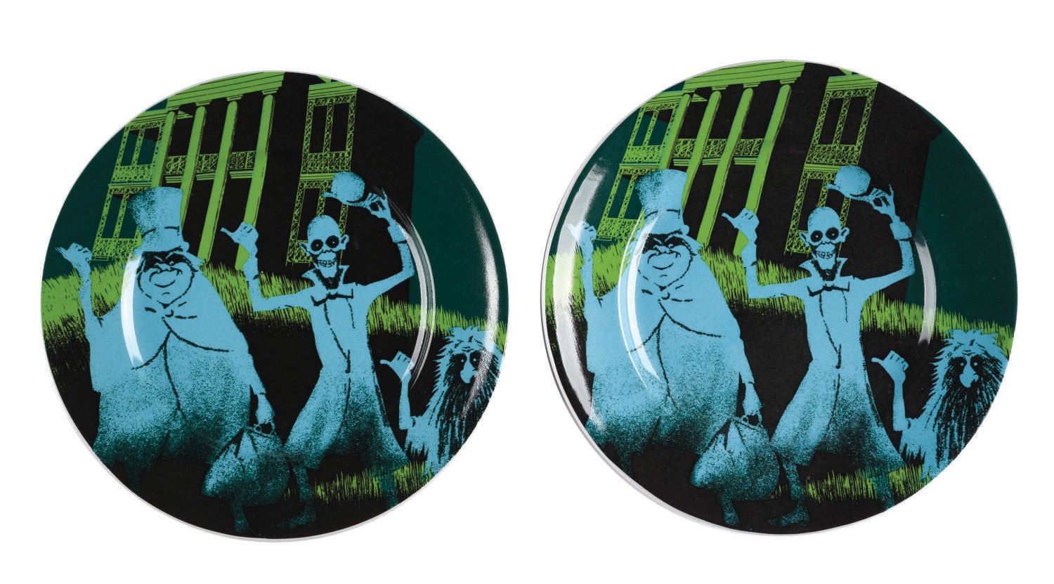 (Disney Parks, 2014) A Pair of Haunted Mansion Hitchhiking Ghosts plates. Both of the 7" plates are in fine unused condition.