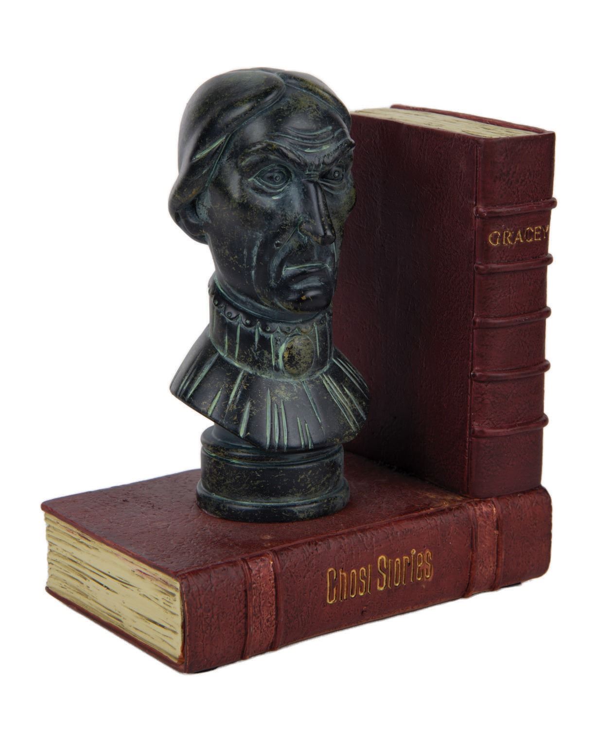 (Disneyland, 2000s) A pair of bookends depicting the Staring Busts from Disneyland's Haunted Mansion. The cast resin bookends are exquisitely detailed to appear to be comprised of actual pebbled leather-bound books and stone busts. Measuring approximately 5.75"x4.5" and 2.75" deep, the book ends are in very fine, as-new condition in their original box.