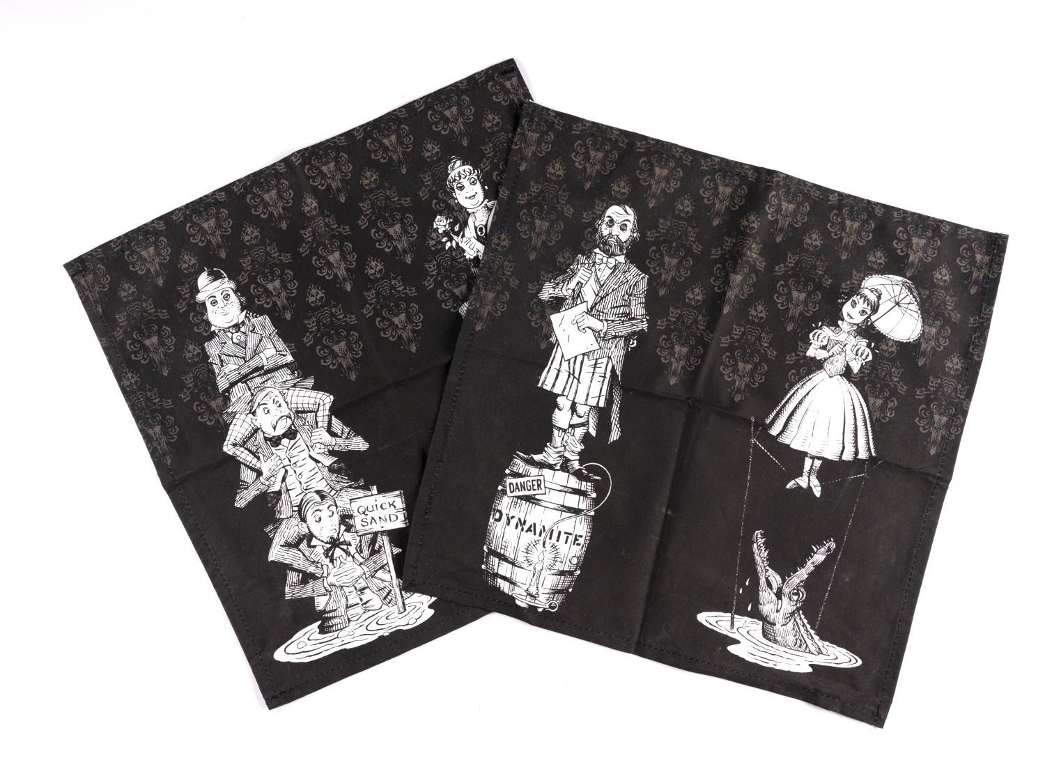 (Disney Parks) A pair of kitchen towels depicting the (4) stretching portraits of the Haunted Mansion. The towels are in fine unused condition.