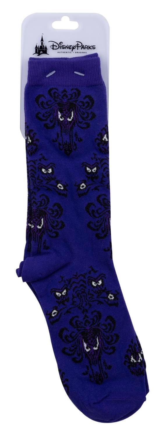 (Disney Parks) A pair of Haunted Mansion wallpaper socks. Measuring 14" long, the socks are in fine condition on their original card.