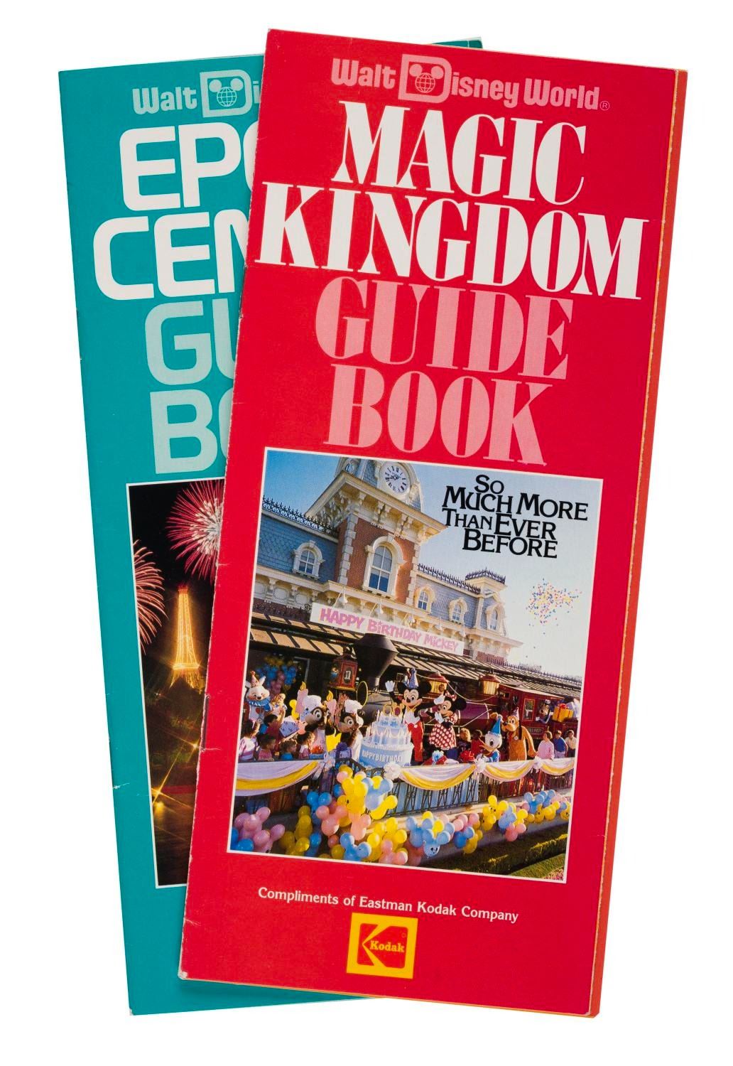 (Walt Disney World, 1988) A pair of Kodak Walt Disney World Guidebooks. Included are the Magic Kingdom Guide Book and the EPCOT Center Guide Book. Each complimentary guidebook highlights new Resort additions like Mickey’s Birthdayland, Pleasure Island, and the Grand Floridian Beach Resort. Measuring 4” x 9”, each brochure is in very good condition with minor wear along its original folds and edges.