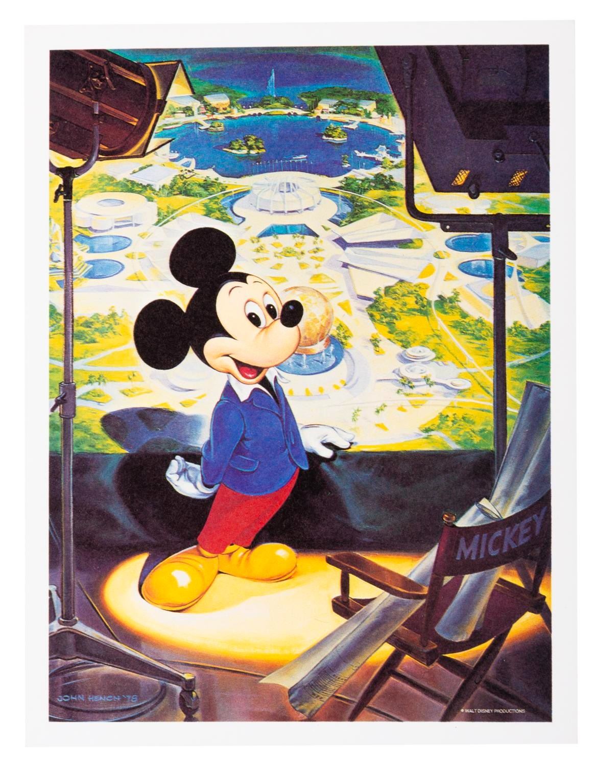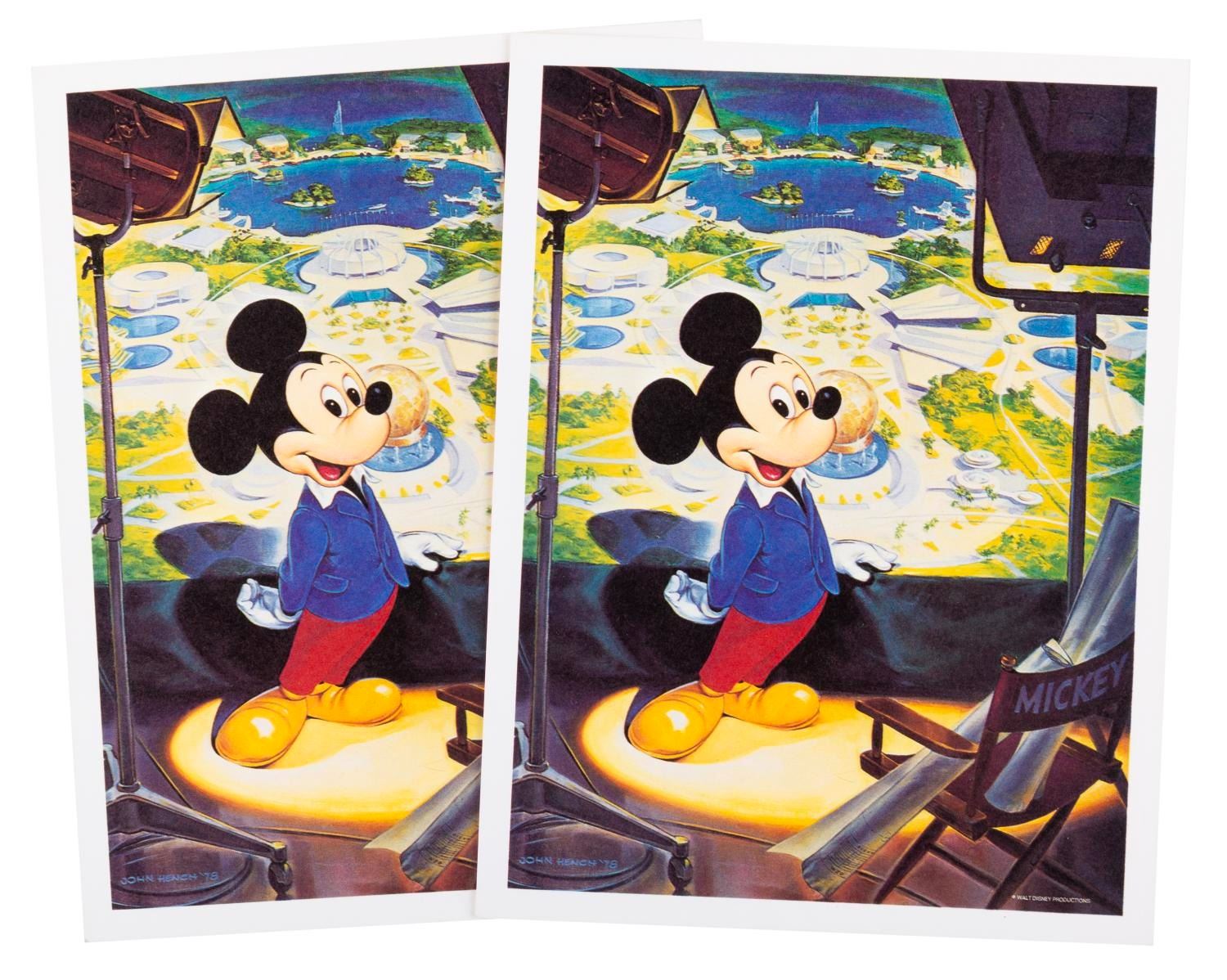 (Disney, 1978) A pair of prints of official Mickey Mouse portrait paintings for his 50th anniversary. Disney Legend John Hench began painting Mickey for his 25th anniversary in 1953 and continued the tradition in the 1970s and beyond. Measuring 5.75" x 7.5" each, the prints are in fine condition.