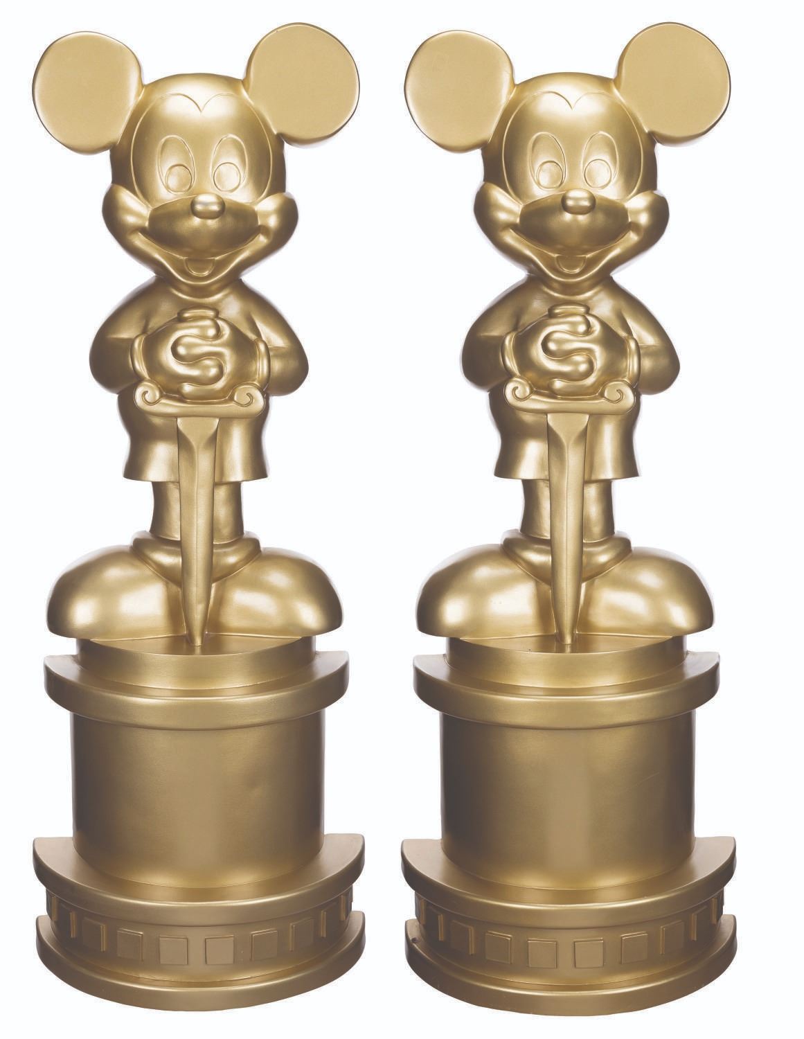 (Disney, 1987-2000s) A pair of Disney Store Mickey Mouse award statue display figures. Measuring 35” x 20” x 10”, the flat-backed statues display in very good condition with light scuffs and one with a 1” x 0.75” area of adhesive residue to the left ear. Due to size and weight, this lot requires special shipping arrangements. Please inquire before bidding.