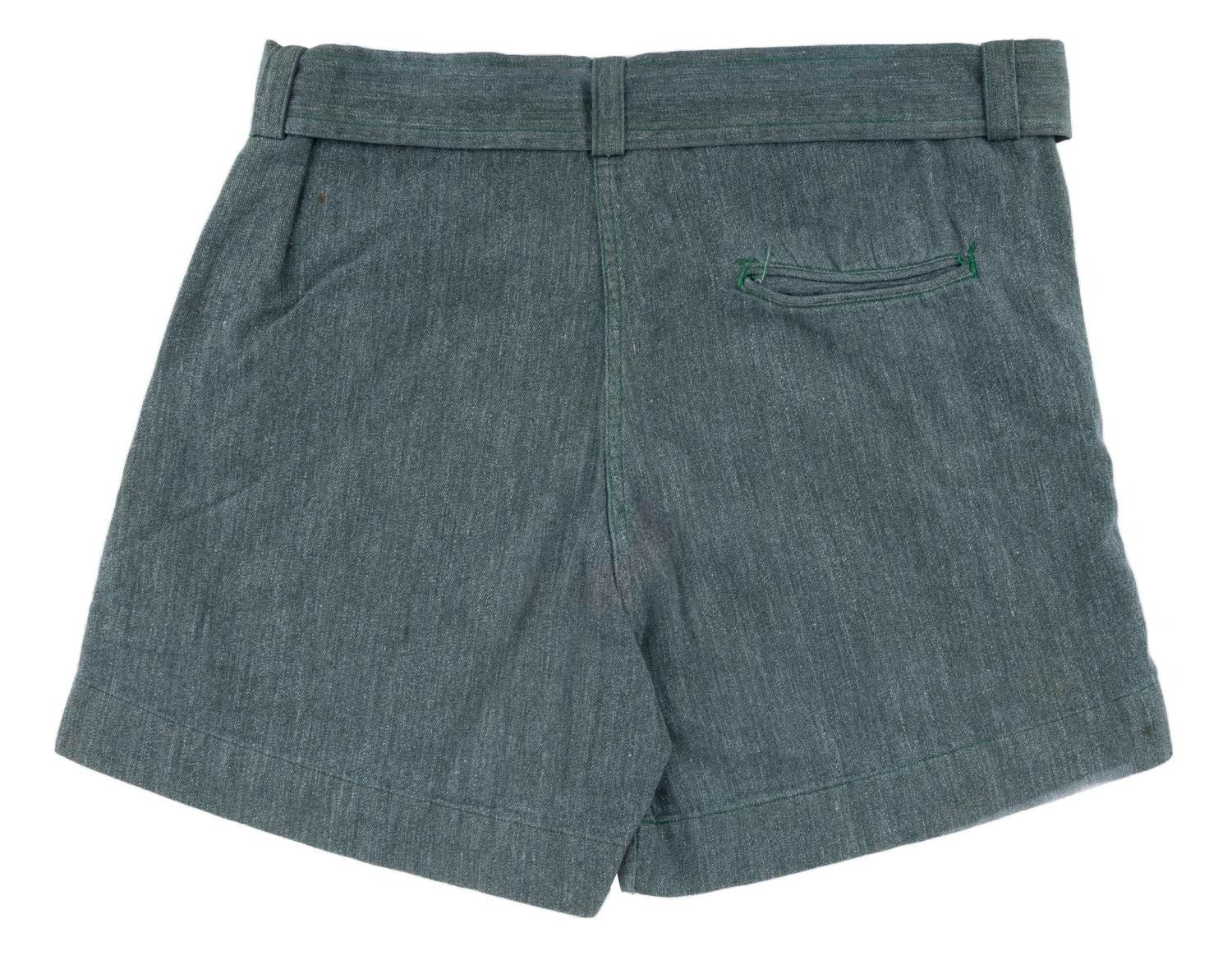 (Kaylee, 1950s) A pair of children’s short pants with a Duroplate buckle featuring Mickey Mouse. Measuring a size "5," the garment is in good condition with scuffs and wear and retaining its original Kaylee Mickey Mouse label.