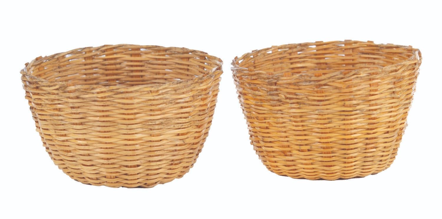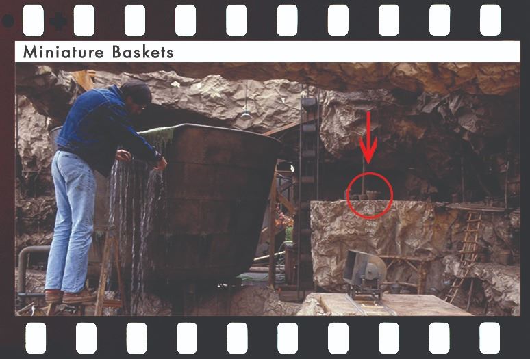 Paramount/ILM, 1984) A pair of miniature woven baskets used in the production of Indiana Jones and the Temple of Doom. Baskets this size were used in extensive scale models of the mines created for effect shots and animation of the mine car chase. Measuring 1.5"x2.25" diameter each, the baskets are in very good condition with slight wear from production use.