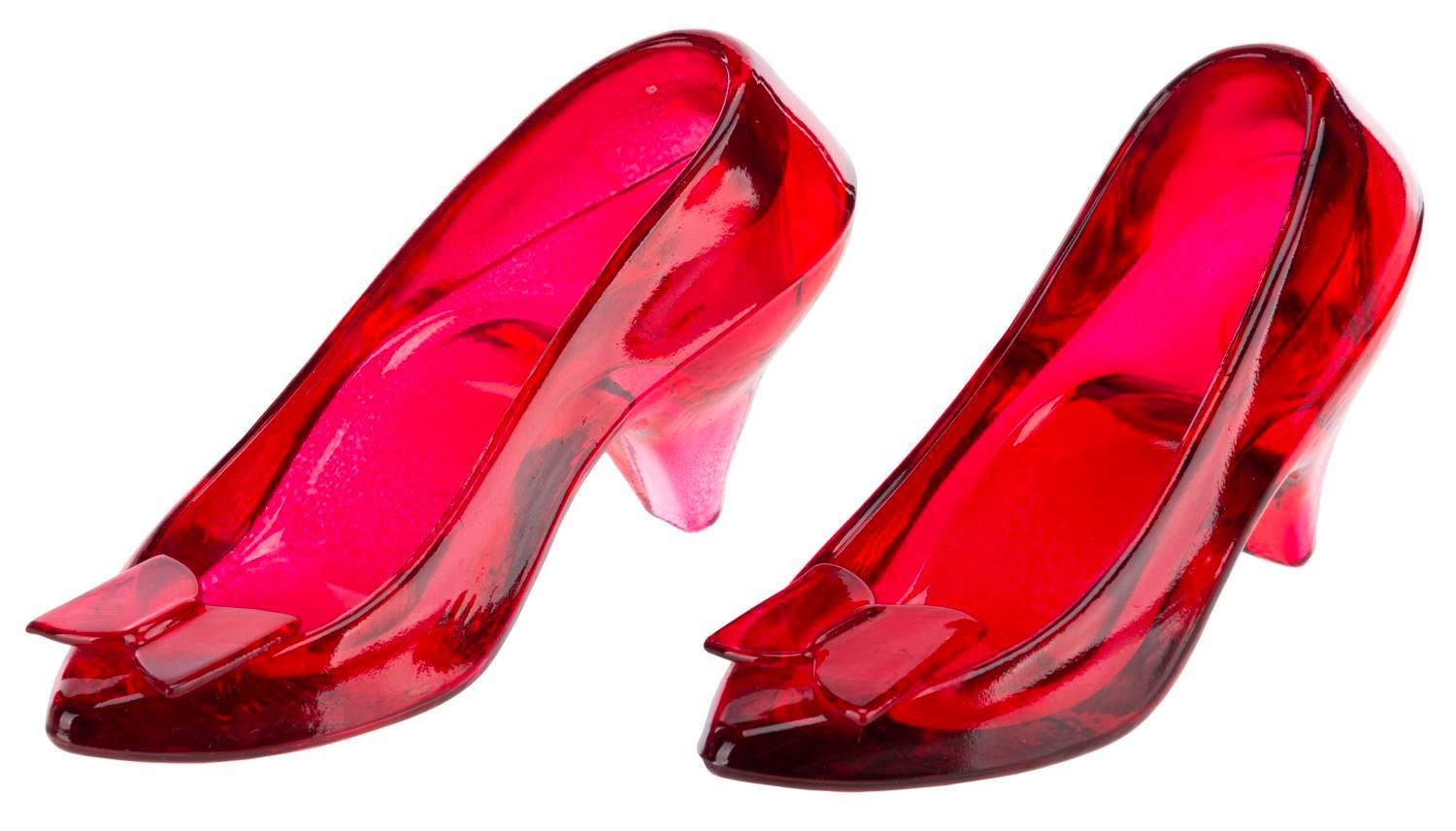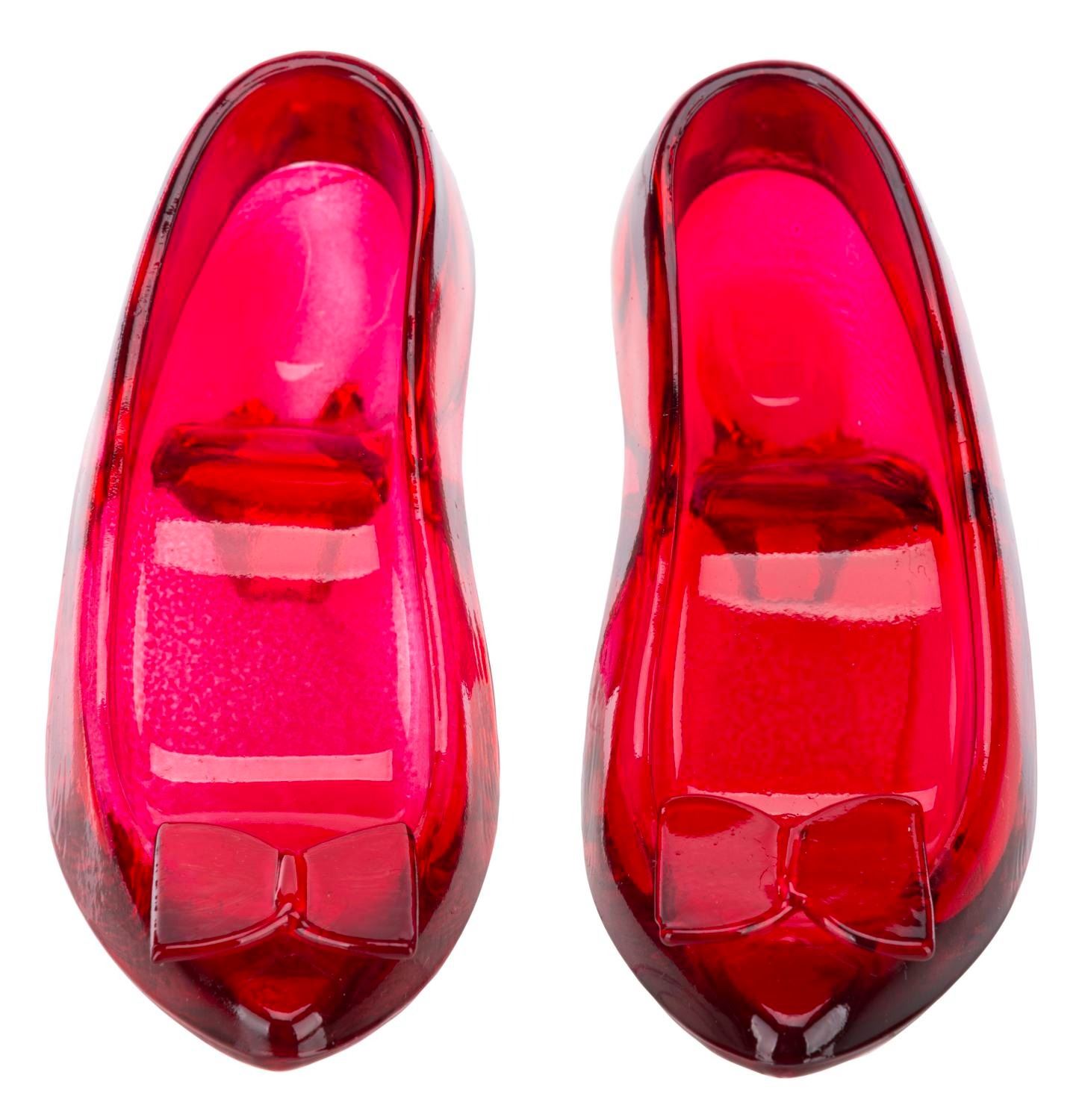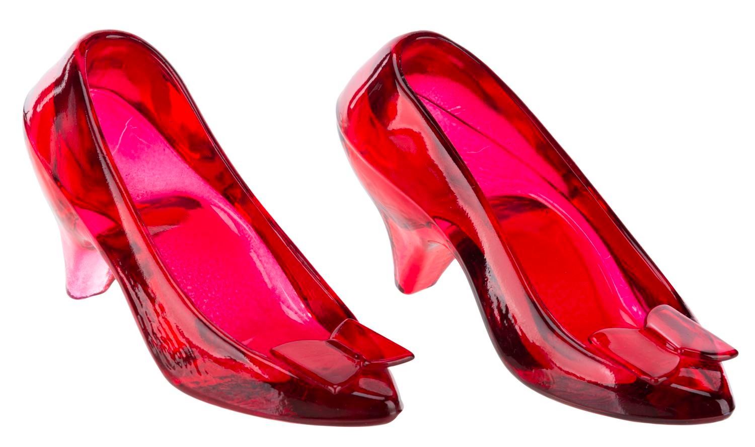 (Oneida Crystal, 1989) A pair of red crystal slippers in the original box. Measuring 5.5" x 2" x 3.75" high each, the crystal slippers are in fine condition.