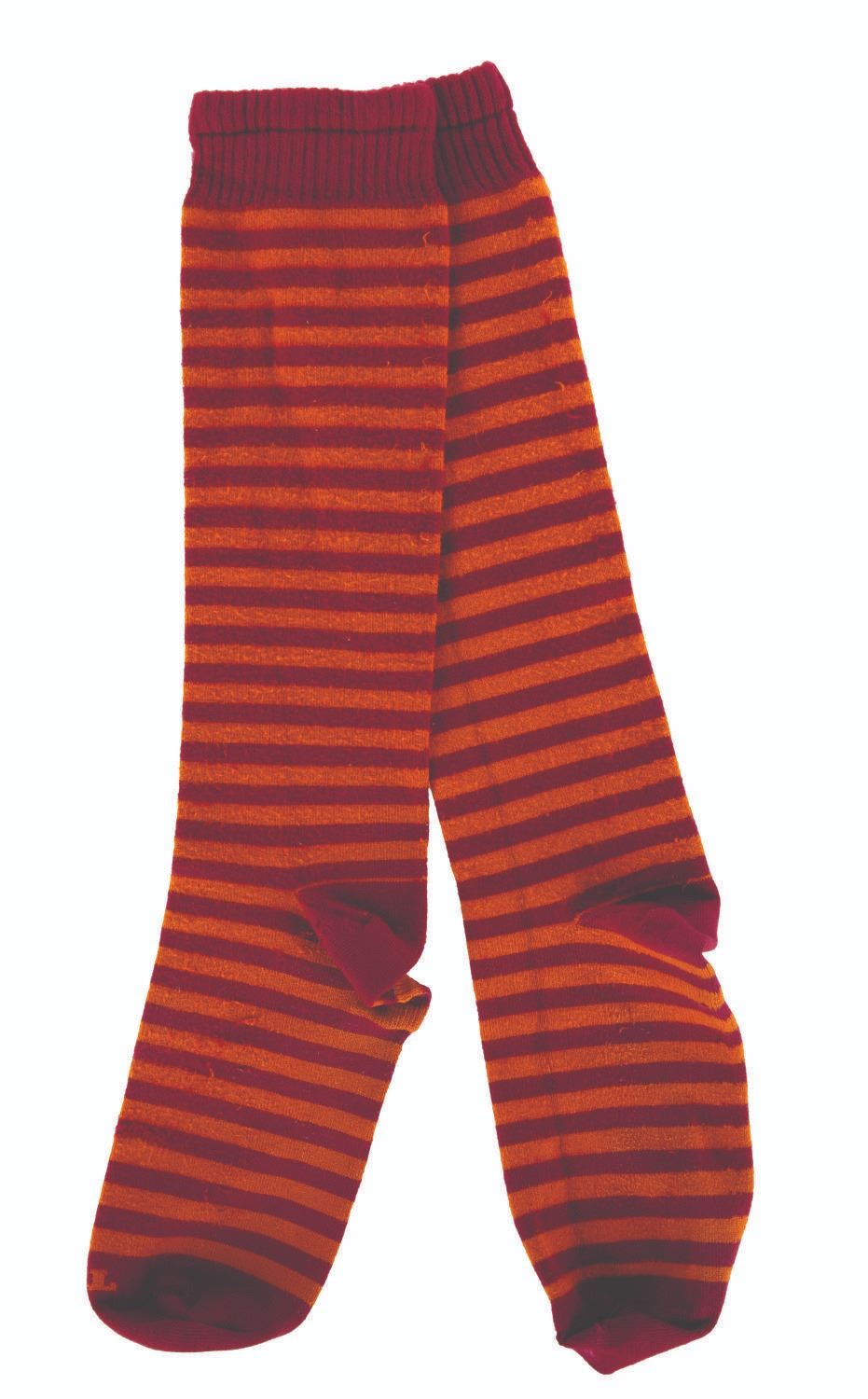 (Walt Disney World, 1990s-2000s) A pair of striped socks worn by Cast Members working at the Magic Kingdom’s Pirates of the Caribbean attraction. The one size fits all socks are in good Park-used condition with light pilling at wear.