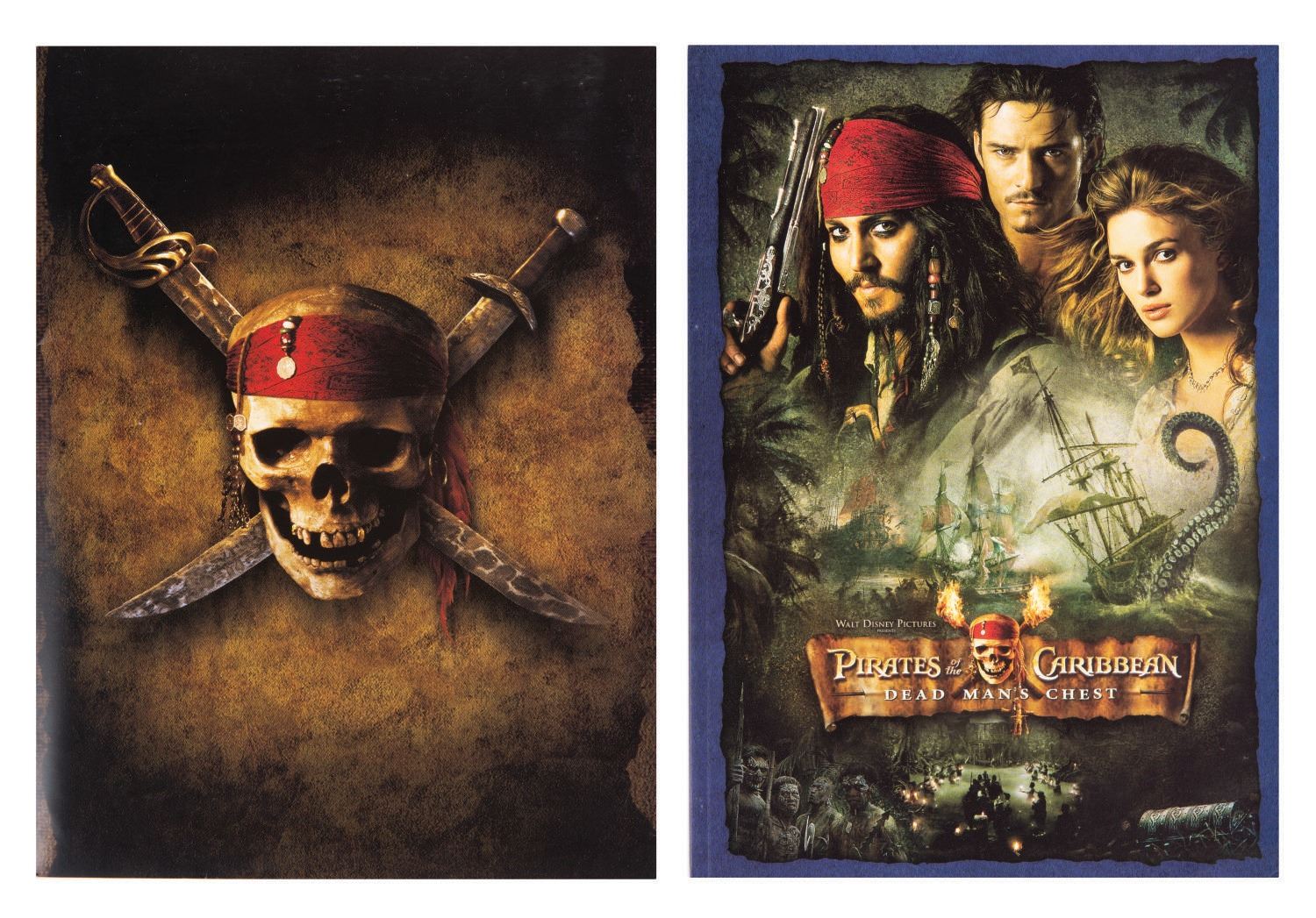(Disney, 2003/2006) A pair of press kits for the Pirates of the Caribbean film franchise for U.S. and Japan. The press kit advertising "Pirates of the Caribbean: The Curse of the Black Pearl" is in English while the press kit for "Pirates of the Caribbean: Dead Man's Chest" is in Japanese. Measuring 12"x9", the kits are in fine condition.