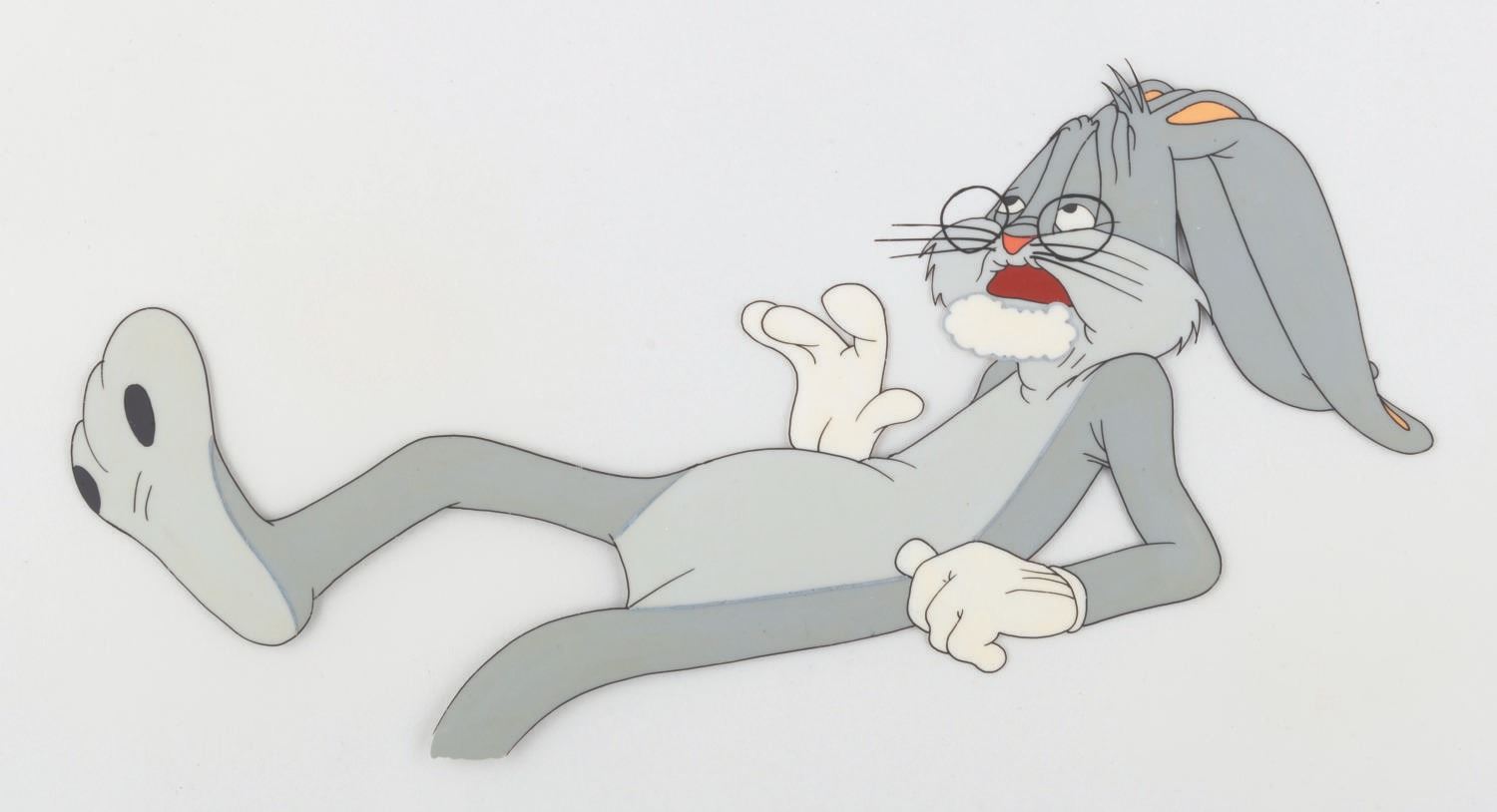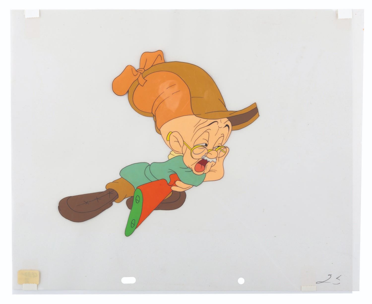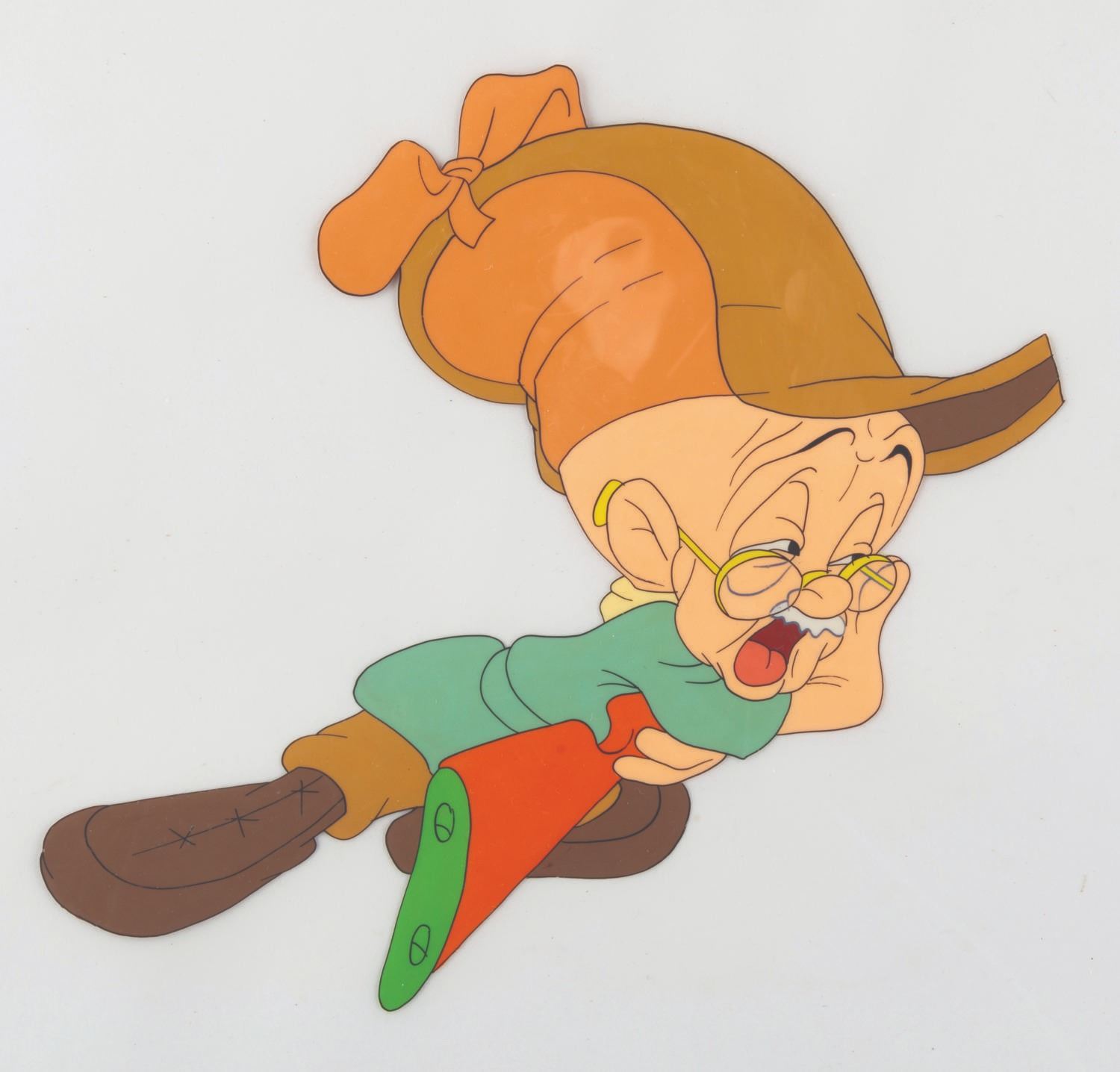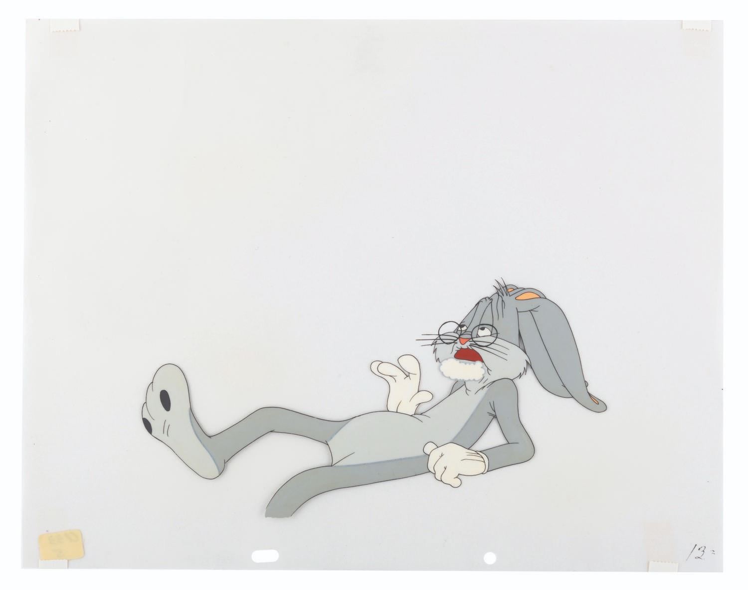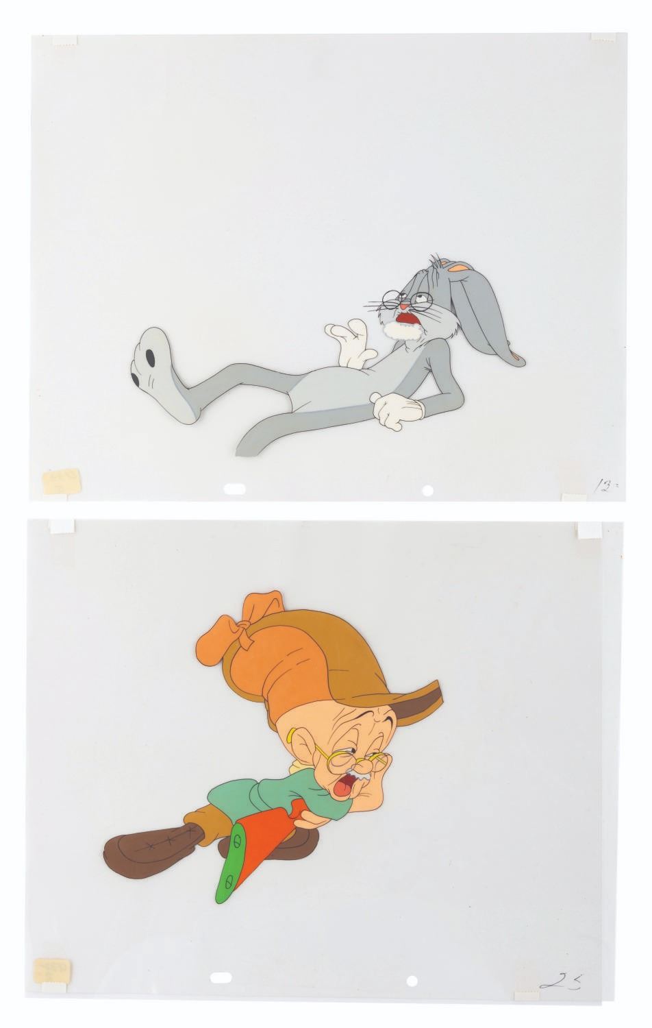 (Warner Bros., 1944) A pair of original production cels of Bugs Bunny and Elmer Fudd from the Merrie Melodies short “The Old Grey Hare.” With image sizes of 4.5” x 8.25” and 6.5” x 7” on cels measuring 9.75” x 12.25” and 10” x 12.25”, the pair are in fine production-used condition.