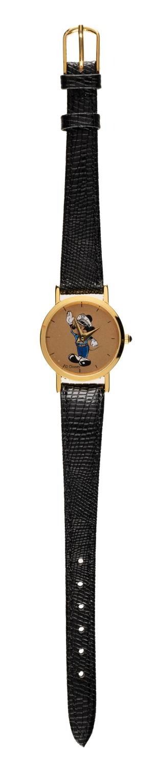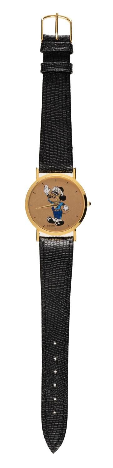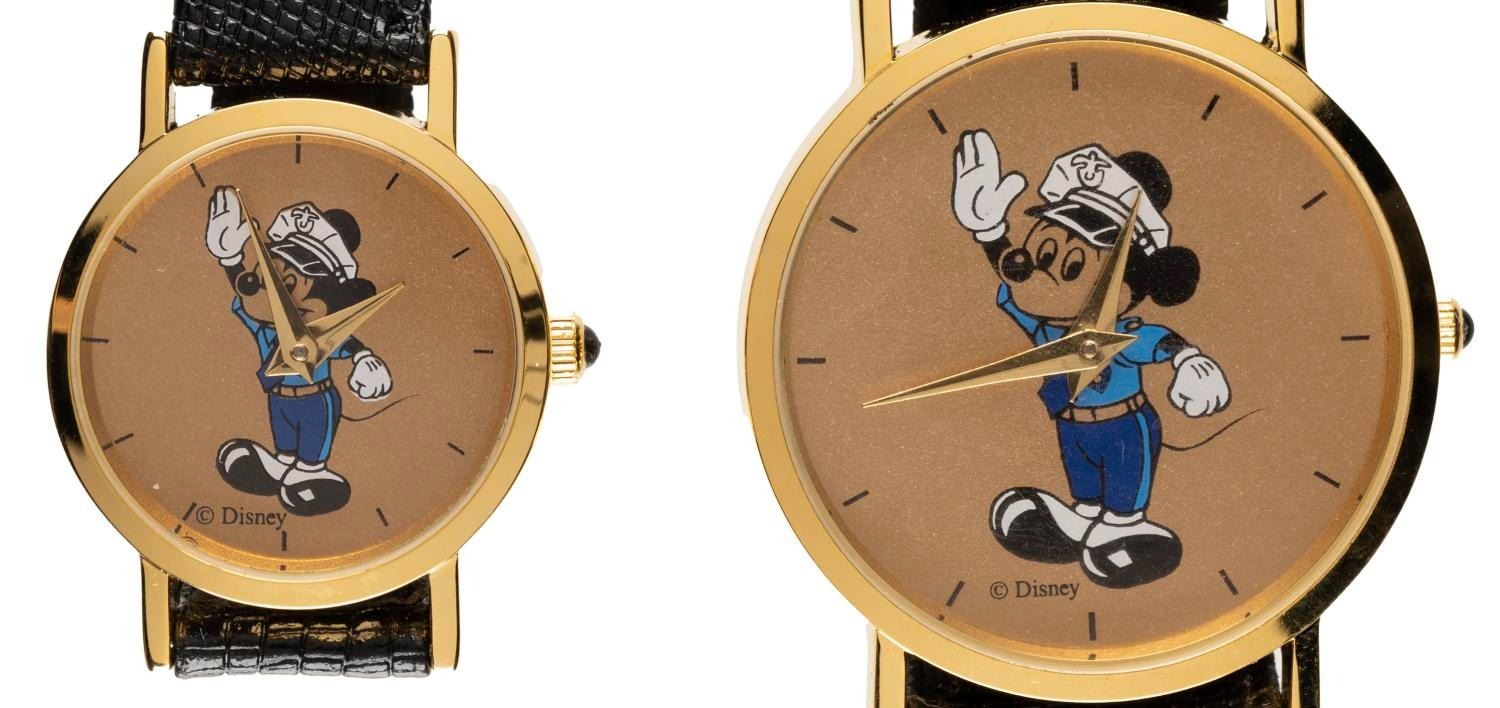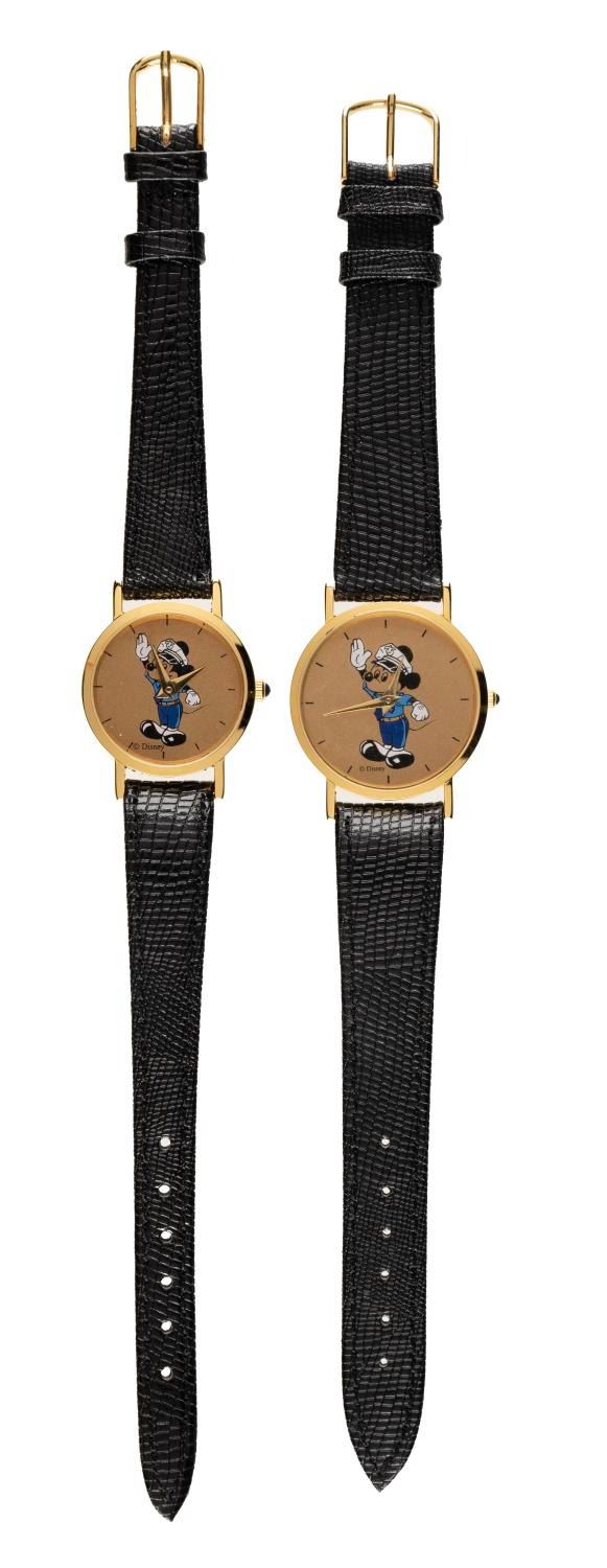 (Disneyland, 1980s-90s) A Pair of Disneyland Security wristwatches, issued exclusively to Security Hosts and Hostesses. The pair includes one men's and one women's wristwatch featuring the Mickey Mouse logo of the Disneyland Security Department. Measuring 8" and 9" long, each piece is in fine condition.