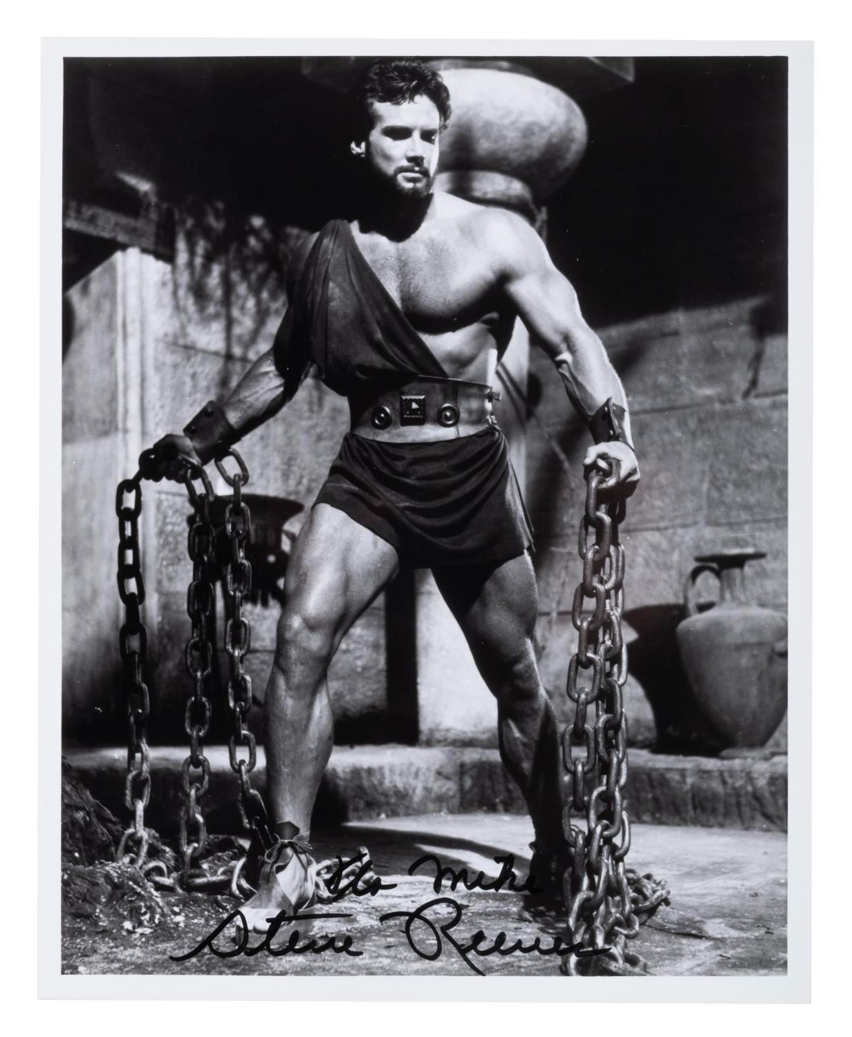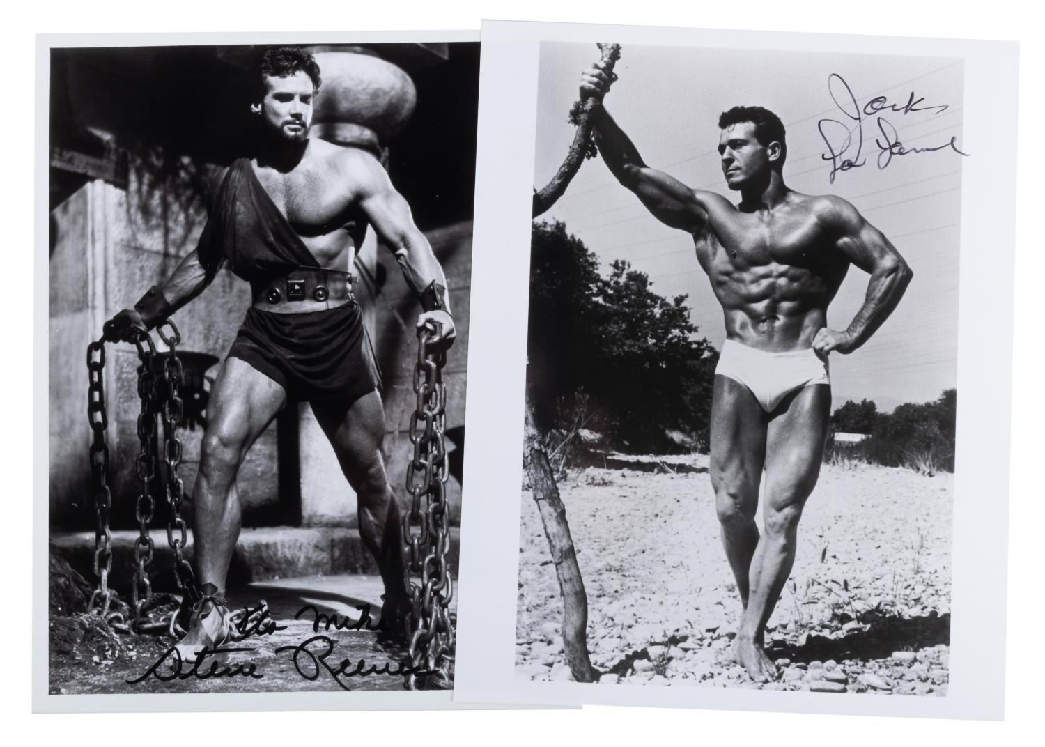 (LaLanne & Reeves, 1940s-50s) A pair of signed publicity photos of Steve Reeves as Hercules and Jack LaLanne. Measuring 8” x 10” the photos are in fine condition.