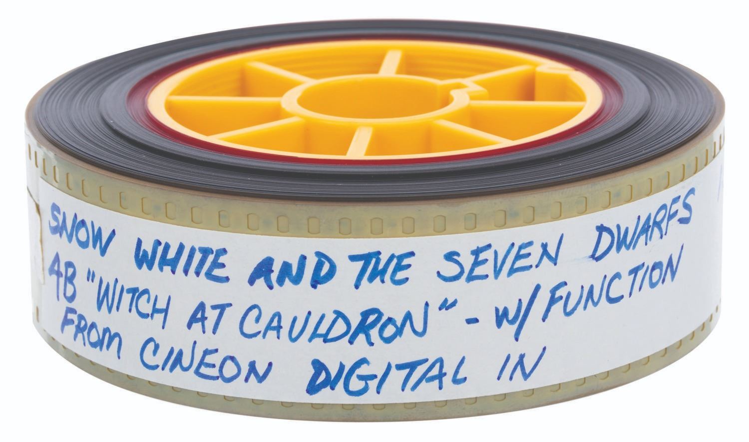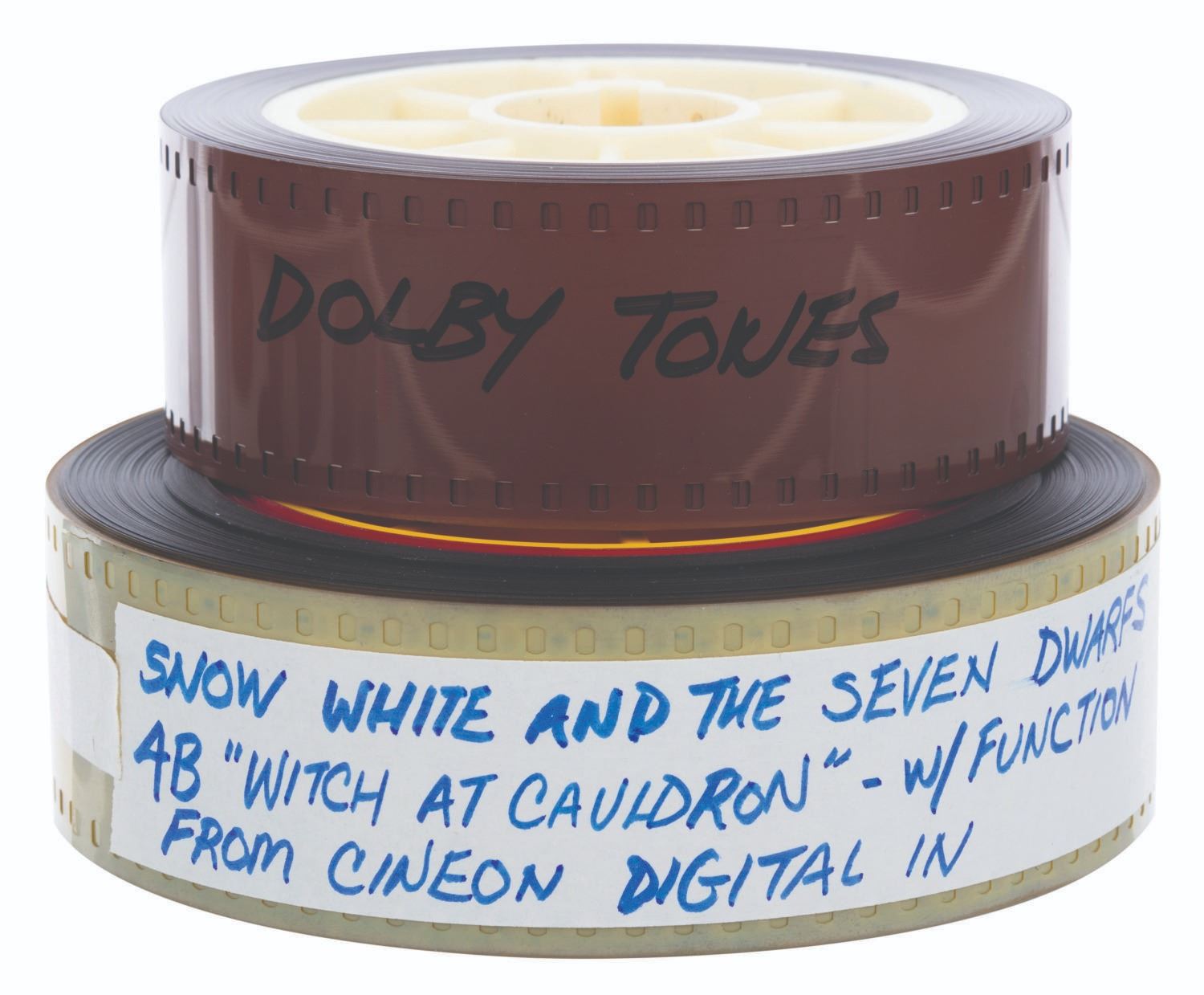 (Disney, 1990s) A pair of Snow White’s Scary Adventures audio reels from the scene of the Witch at her cauldron. These reels came from Cineon, one of the first computer-based digital film systems created by Kodak in the early 1990s. Measuring 3.75" in diameter with a 3" diameter core, and 4.5" in diameter with a 3" diameter core, the untested reels are presumed in fine condition.