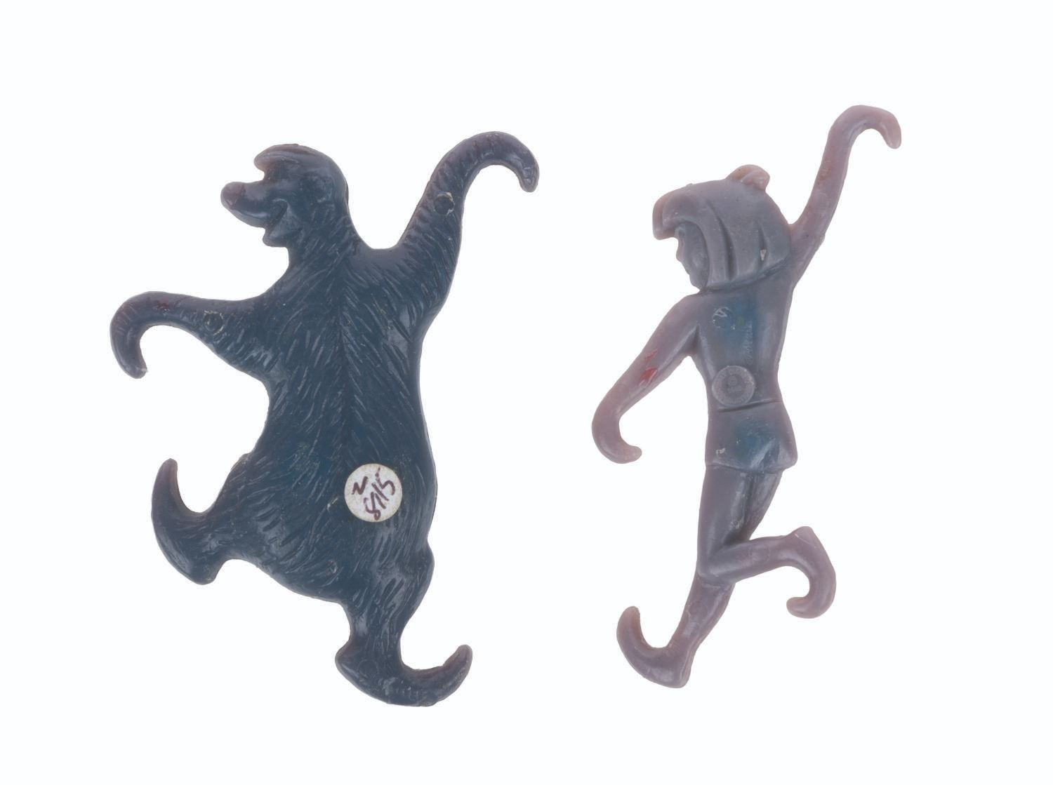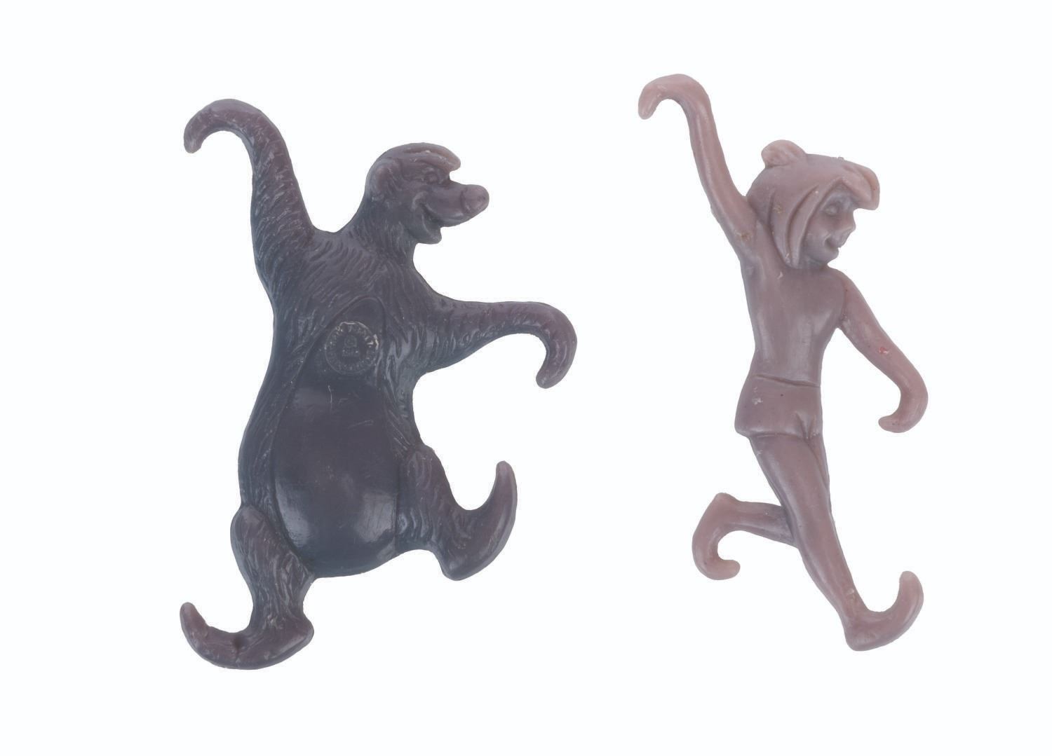 (Nabisco, 1960s) A pair of Jungle Pals figures of Baloo and Mowgli, originally offered as prizes in Nabisco’s Wheat Honeys Cereal. Each measuring 2.75” long, the toys are in very good condition with light wear from handling and age.