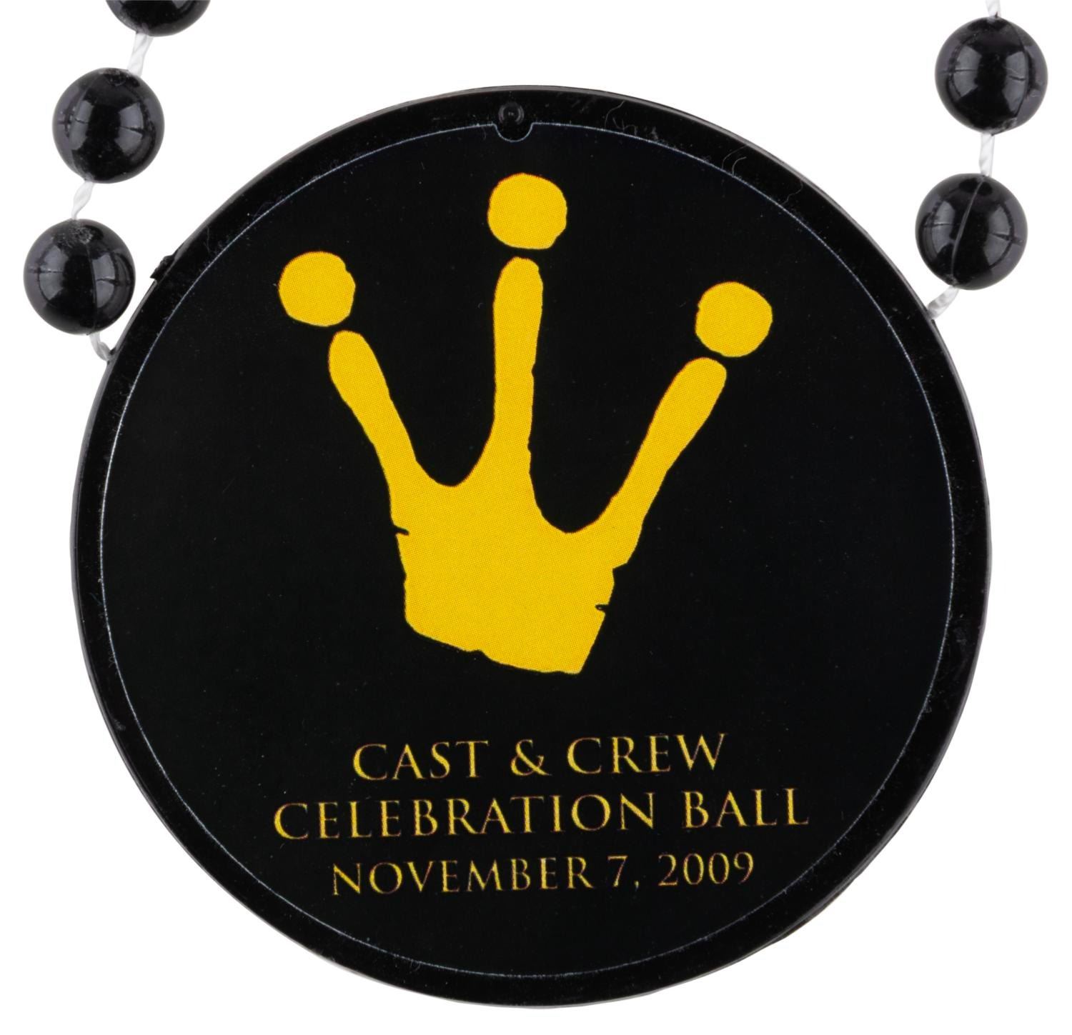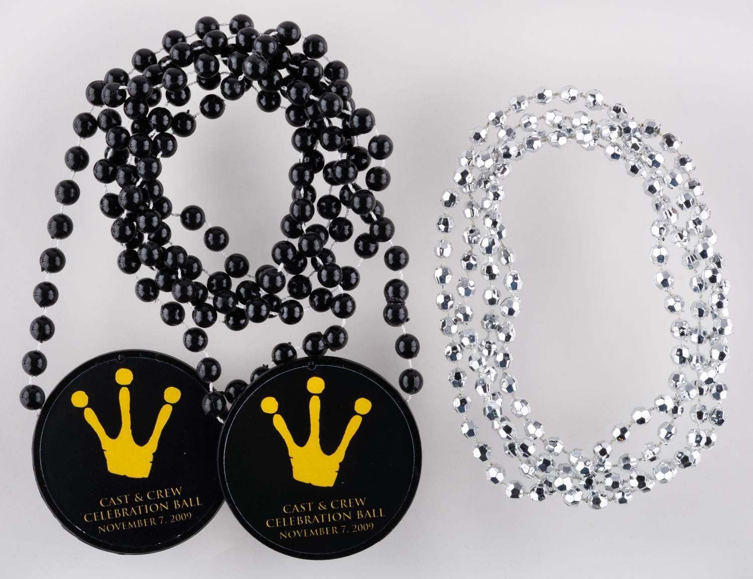 (Disney, 2009) A pair of plastic necklaces from the Cast & Crew Celebration Ball for "The Princess and the Frog" on November 7th, 2009. Also included is a silver string of plastic beads. The necklaces are in very good condition.
