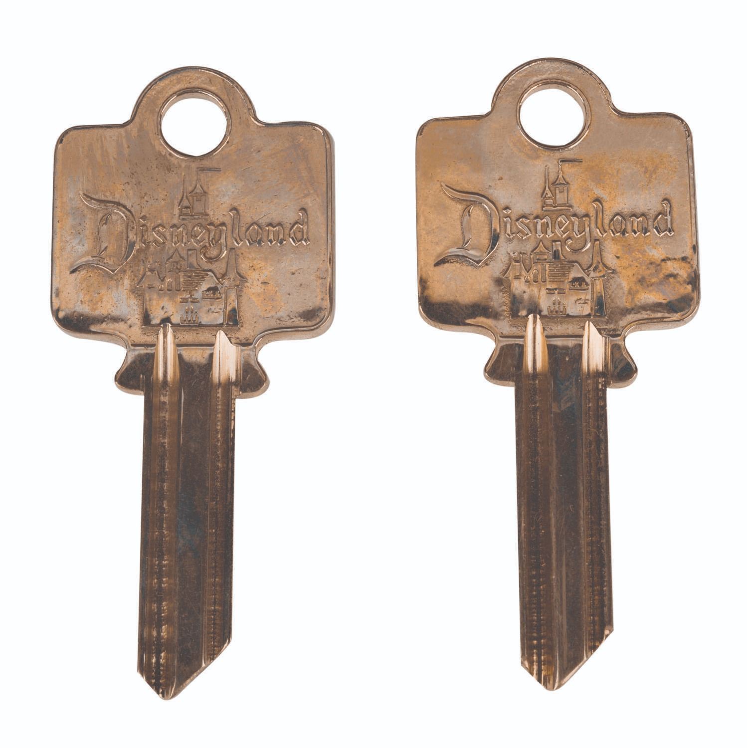 (Disneyland, 1955-1964) A pair of Yale & Towne souvenir keys from Disneyland. Among the earliest and most popular keepsakes from Disneyland, these unique Yale key blanks were a wonderful and functional way to take a piece of Disneyland magic home after your exciting visit. Each measuring, 2.25"x1", the still uncut key blanks are in fine condition.