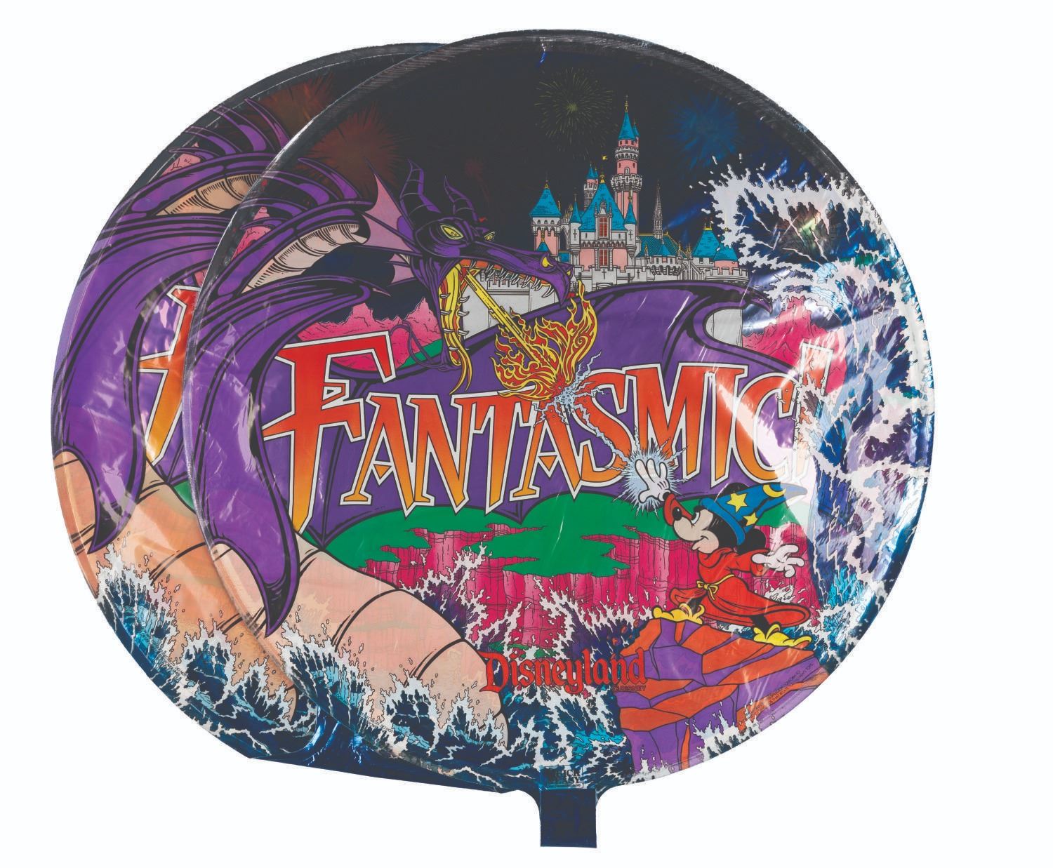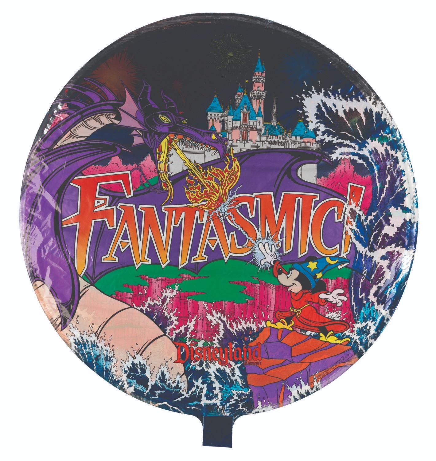 (Disneyland, 1990s) A pair of unused Fantasmic! Mylar balloons. Each measuring 19” in diameter, the balloons are in very good condition with typical light creases.
