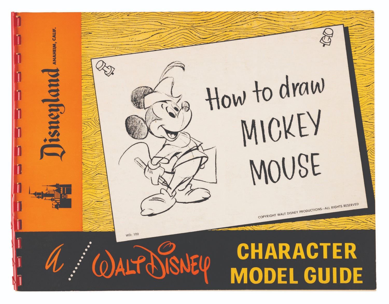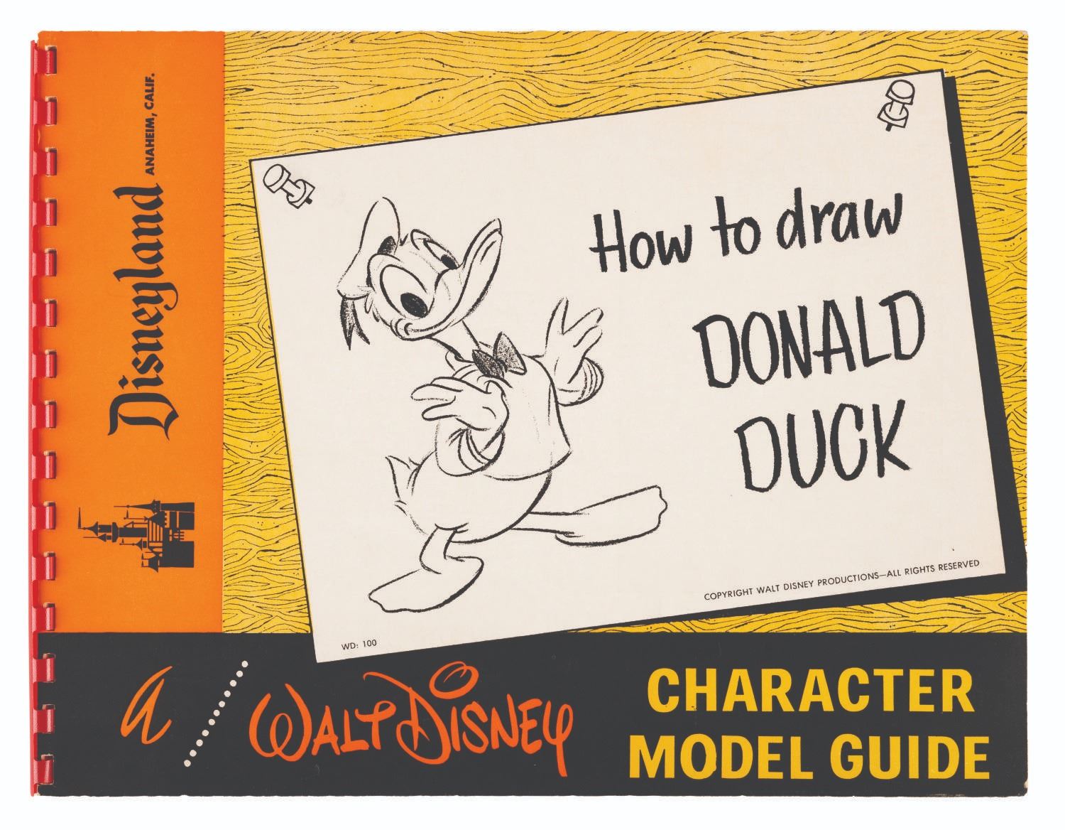 (Disneyland, 1957-58) A pair of "Walt Disney Character Model Guides" from the Art Corner at Disneyland. These souvenir books provide pages of reference and tips for how to draw Mickey Mouse and Donald Duck and contain animator's model sheets with blank pages to practice. Measuring 11"x8.5", each of these books is in very good condition with scuffing to their backs and minor wear.