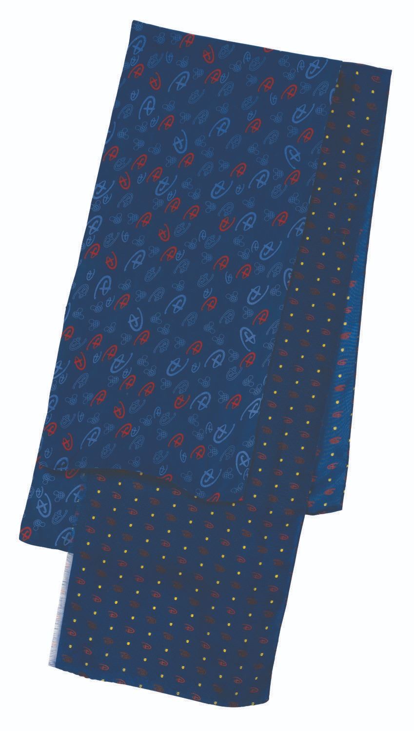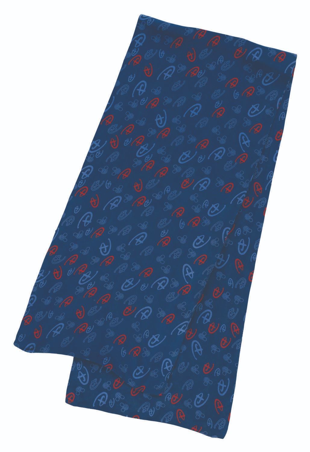 (Walt Disney World, 2000s) A pair of monogram scarves worn by Cast Members at Walt Disney World, both featuring the Resort's logo and the Disney "D." Labeled a size OSFA, the scarves are in good to very good condition with fraying, discoloration from age, and wear from Resort use.