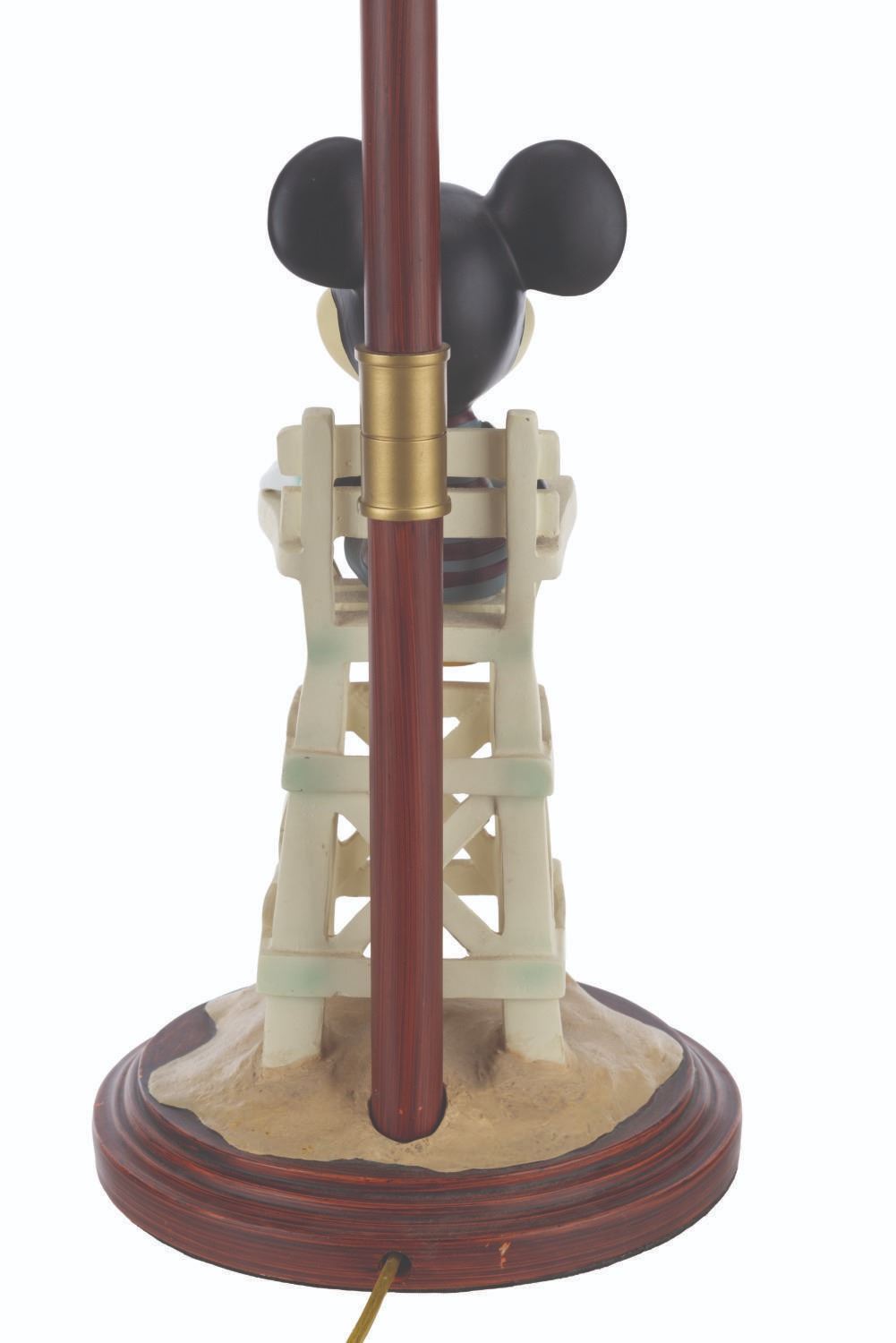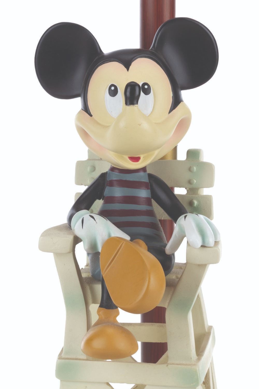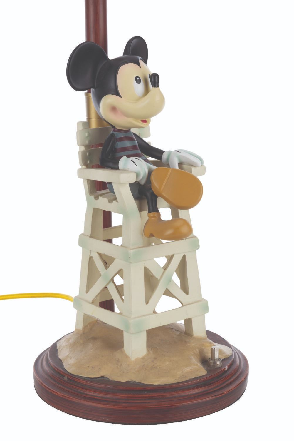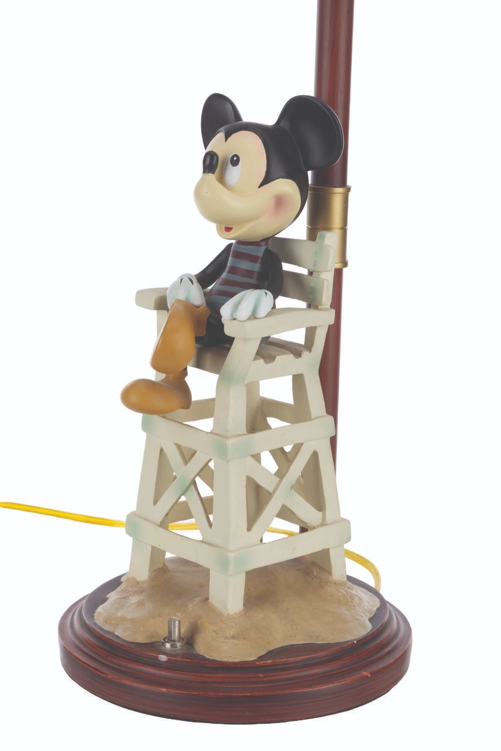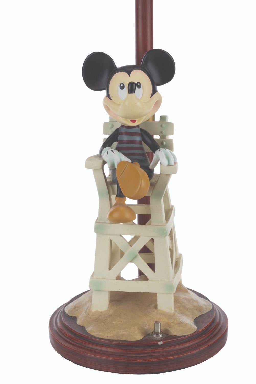 (Disney's Paradise Pier Hotel, 2001-2023) A bedside lamp from Disney's Paradise Pier Hotel featuring Mickey Mouse dressed as a lifeguard. The lamp worked when tested, requiring a power source and a light bulb (not included). Measuring 23" tall and 7" in diameter, the lamp is in very good condition with light wear from Resort use.
