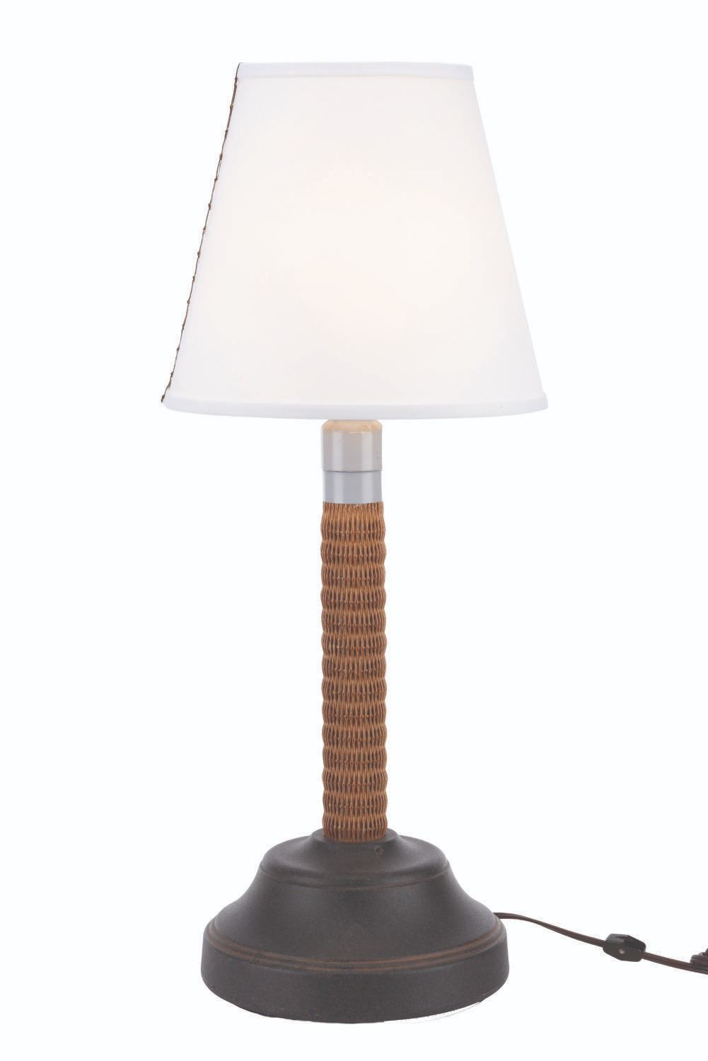 (Disney's Paradise Pier Hotel, 2001-23) A nautical-themed table lamp from Disney's Paradise Pier Hotel at the Disneyland Resort. The lamp worked when tested, requiring a power source and a light bulb (not included). Measuring 29" tall x 9.75" in diameter with a 10.75" tall x 12.25" diameter shade, the lamp is in good working condition with some general wear from use and oxidation to the shade rest.