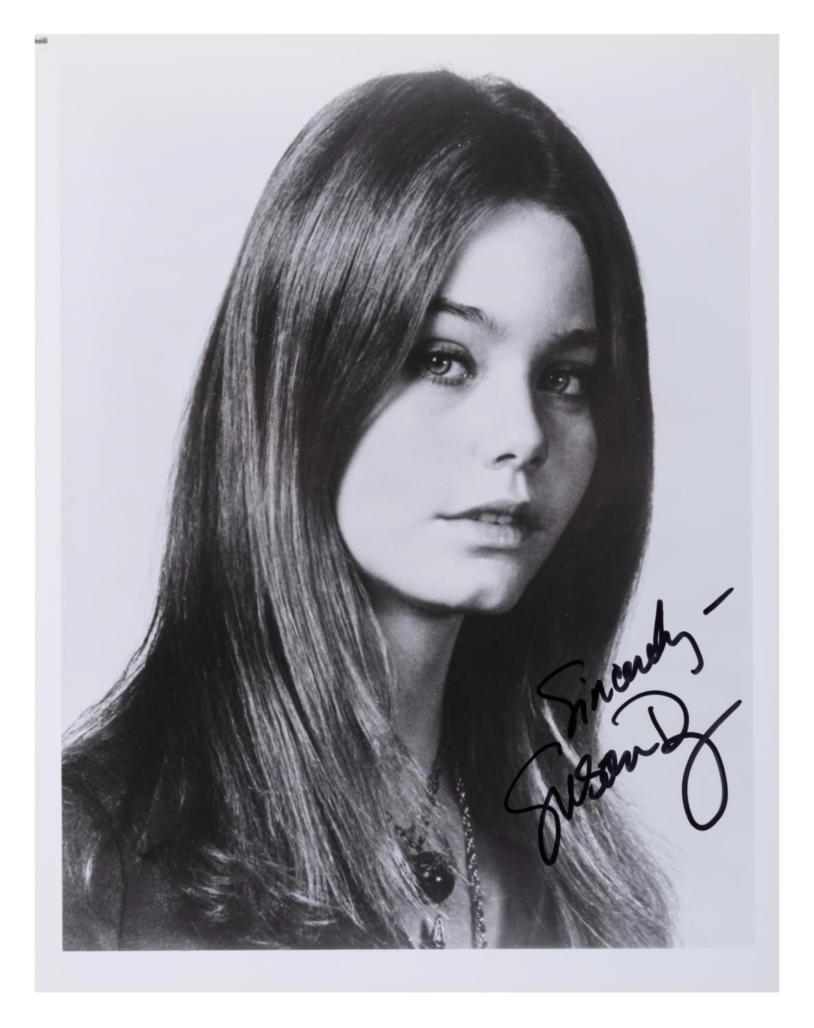 (ABC, 1990s-2000s) A publicity photo of Susan Dey from "The Partridge Family," signed by the actress in the 1990s-2000s. Measuring 8" x 10.25", the black and white photo is in good condition with scratches and edge wear.