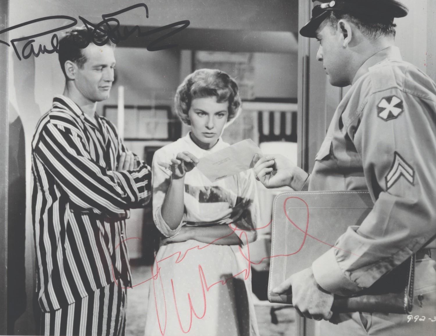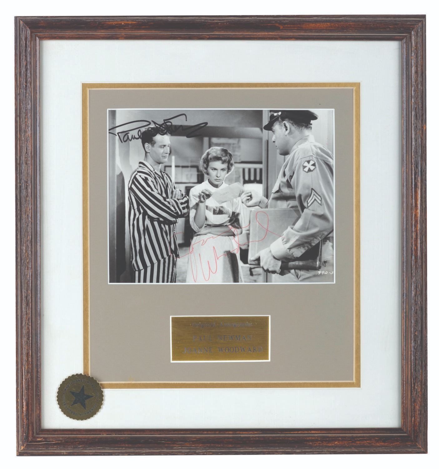 (20th Century Fox, 1958) A publicity photo from “Rally 'Round the Flag, Boys!” signed by Paul Newman and Joanne Woodward. The two married in January of 1958 and remained together until Newman passed away in 2008. Measuring 8” x 10”, the double-signed publicity still is in very good condition.