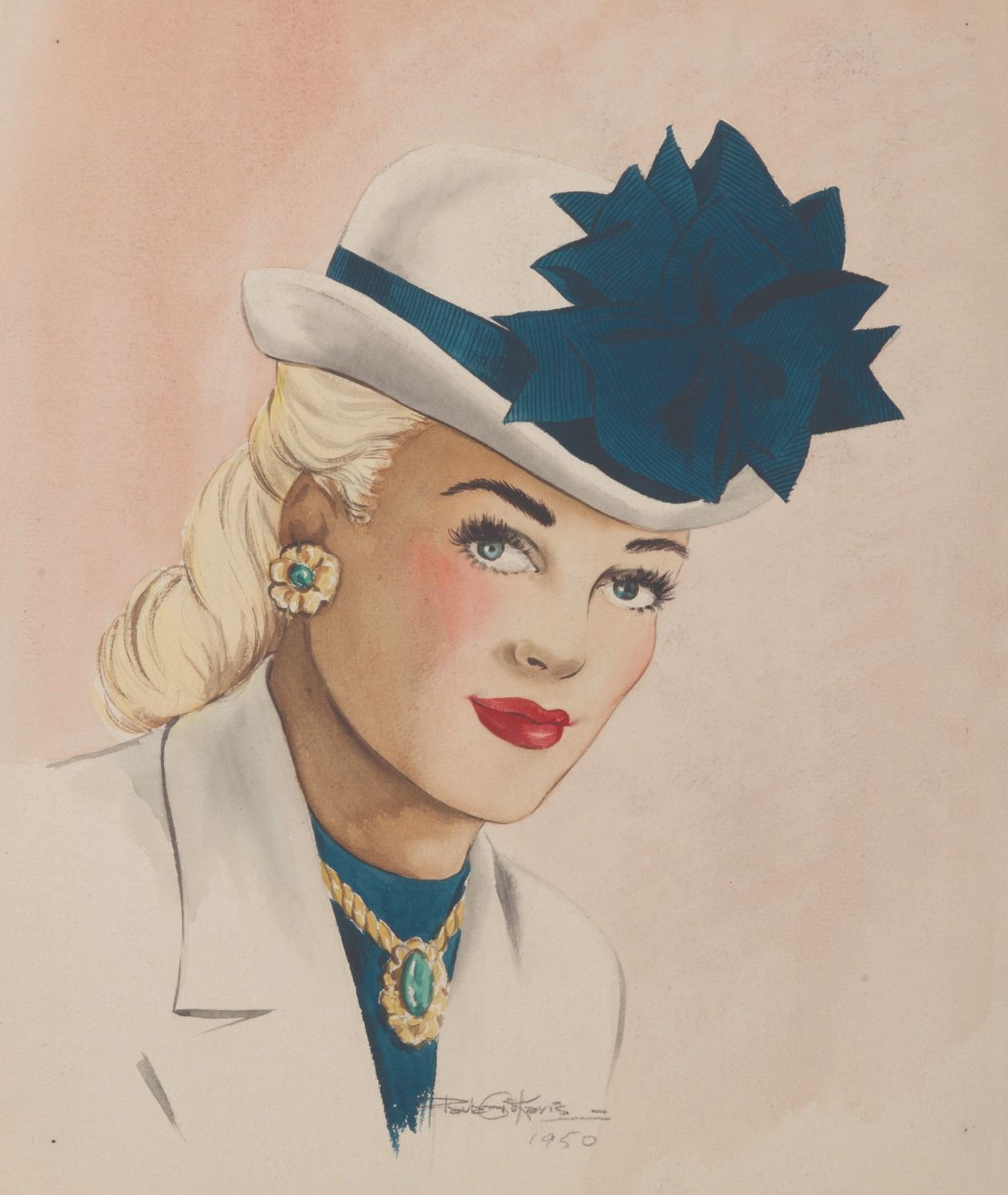 (Giokaris, 1950) (Giokaris) A costume design by Paula Giokaris. Accomplished in gouache and pencil on paper, the 11.5"x13" artwork is in fine condition.