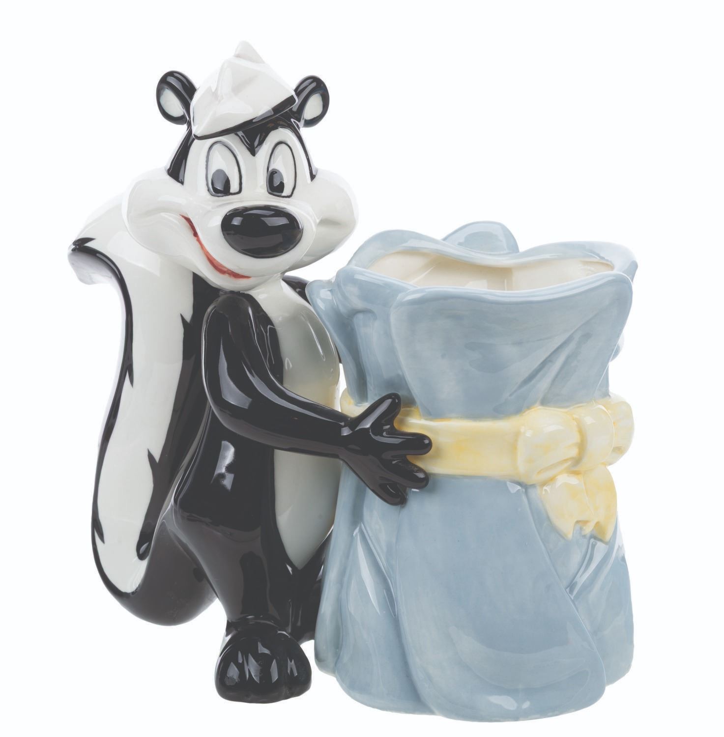 (Warner Bros., 1995) A vase of the Looney Tunes' lothario skunk, Pepe Le Pew. Measuring 9" x 4" x 8" tall, the vase is in very good condition with light scratches, scuffs, and wear.